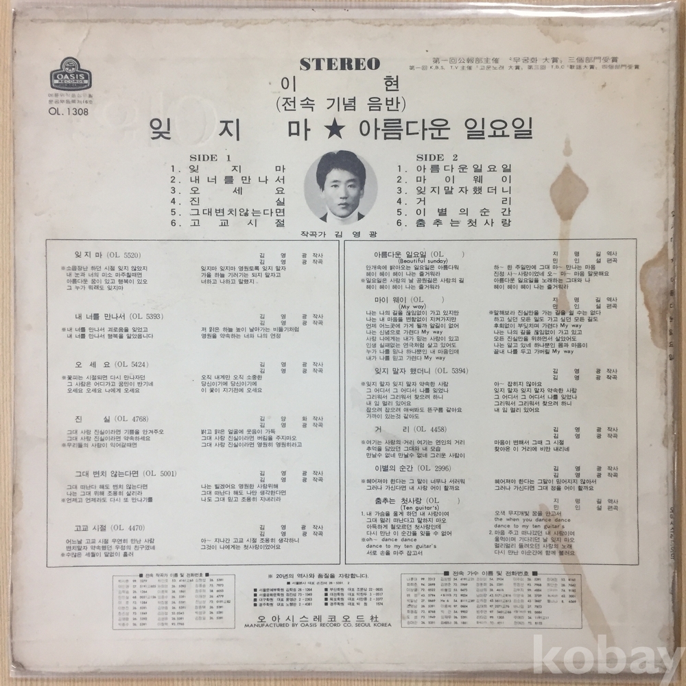 ⊙ 1973년 / 오아시스레코드 - OL 1308