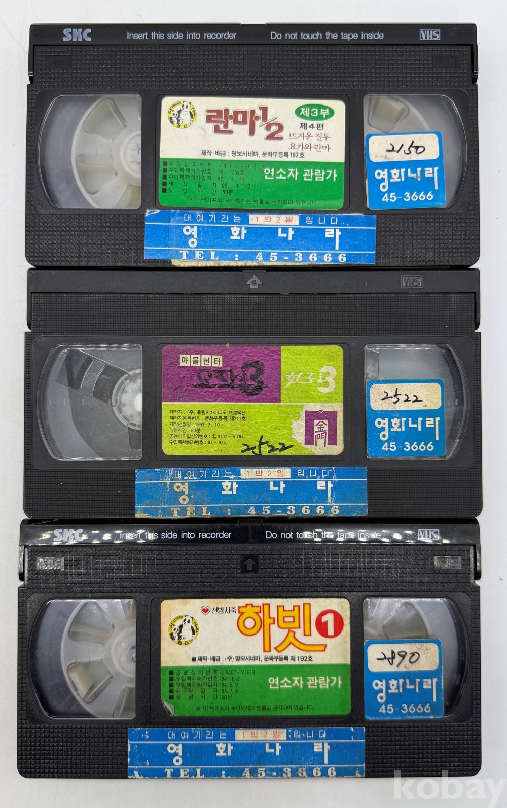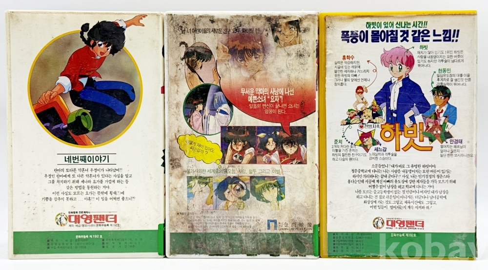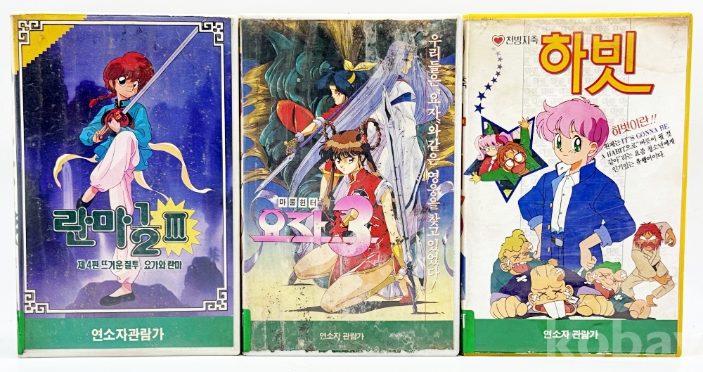 상품 설명 | 1) 란마 1/2 Ⅲ / 1993년 / 테이프 곰팡이 있음 2) 마물헌터 요작 3 / 1993년 / 케이스 및 테이프 곰팡이 3) 천방지축 하빗 / 1994년 |