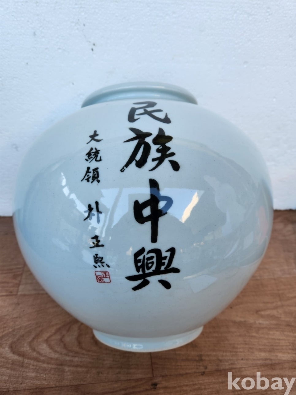 박정희 민족중흥 글씨가 있는 달 도자기 입니다.