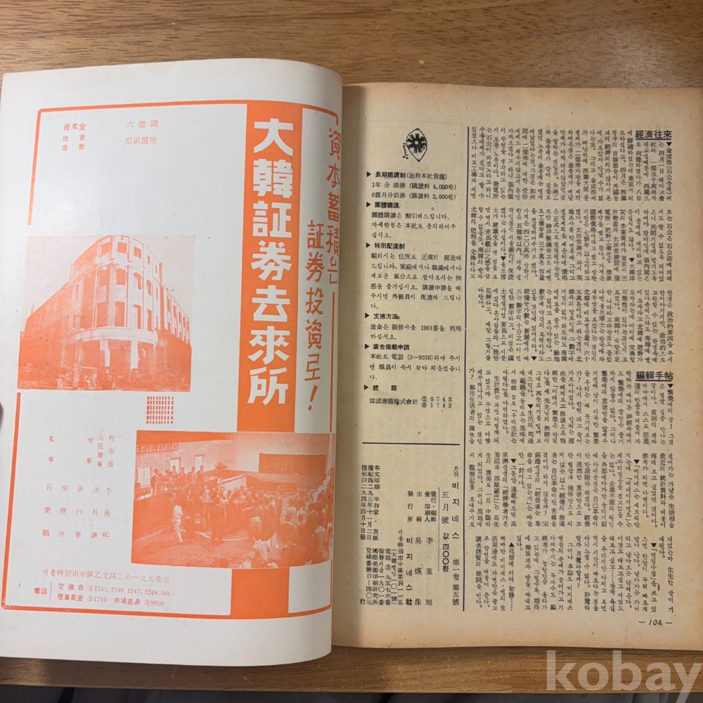 [희귀본, 잡지, 한국현대사, 5.16, 부정축재, 재벌] <월간 비지네스 1961년 5월>, p. 104, 상태 중상급(사진참조)