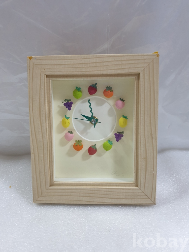 {천원경매} 2-1523 종이 과일 작품 사각 시계 (16*19, *무브먼트 교체 필요)