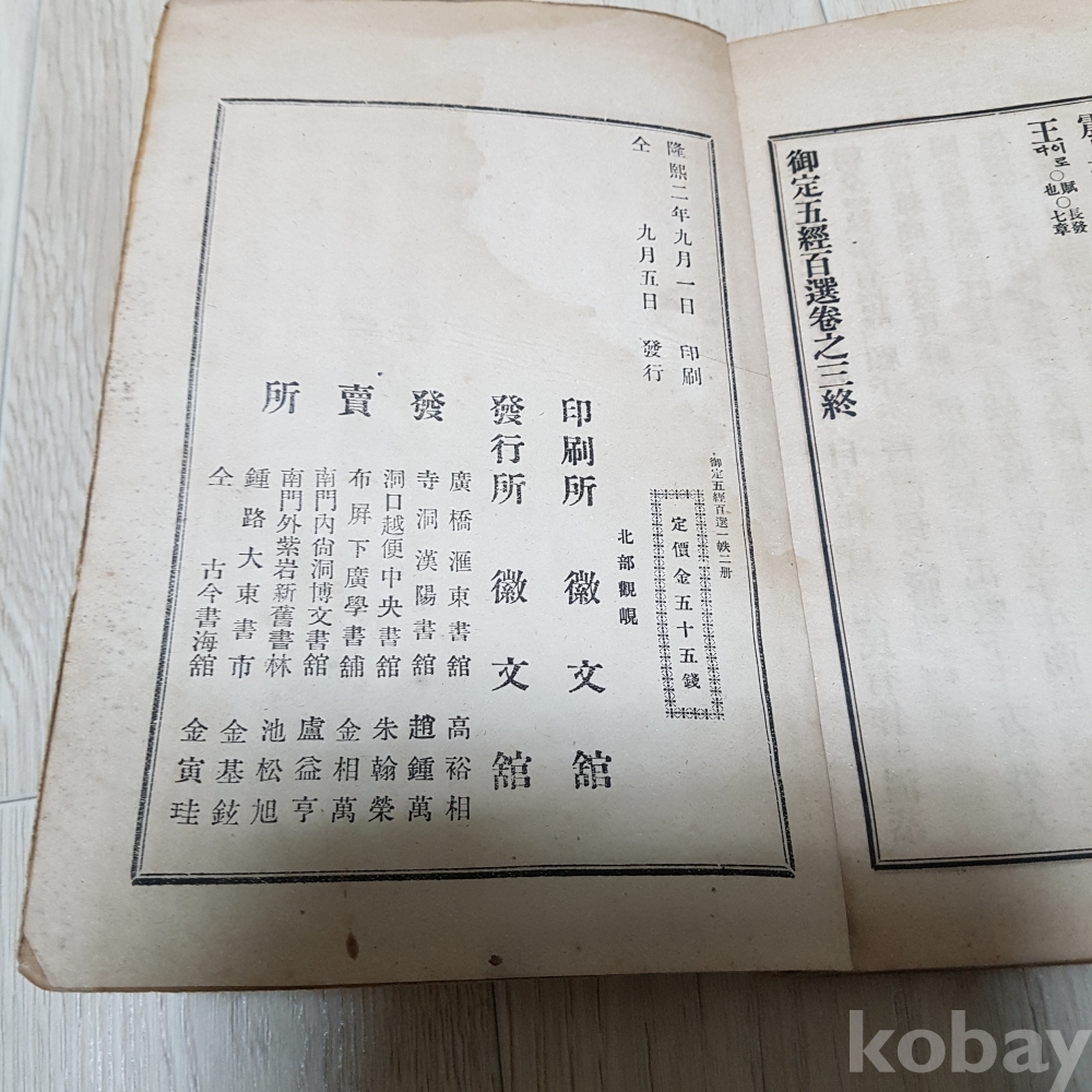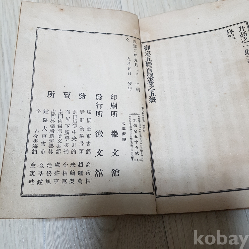 융희 2년 오경 백선 상하 2권 일괄 드립니다