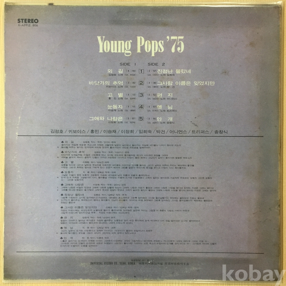 ⊙ 1975년 / 유니버살레코드 - K-APPLE-806