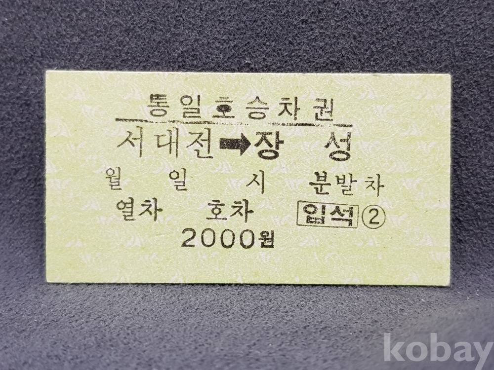 - 미사용 통일호 승차권 " 서대전 ▶ 장성 " 2000원