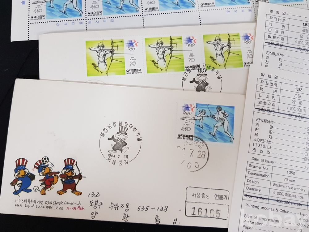 - 1984년 제 23회 올림픽대회 기념 전지, 시트, 안내카드 등
