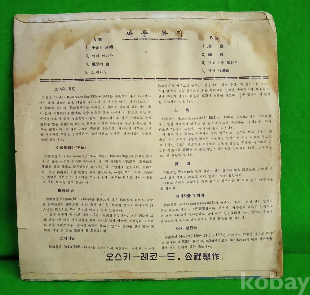 -레코드 커버와 속커버는 종이이며 레코드 커버가 세월의 흔적이 있습니다