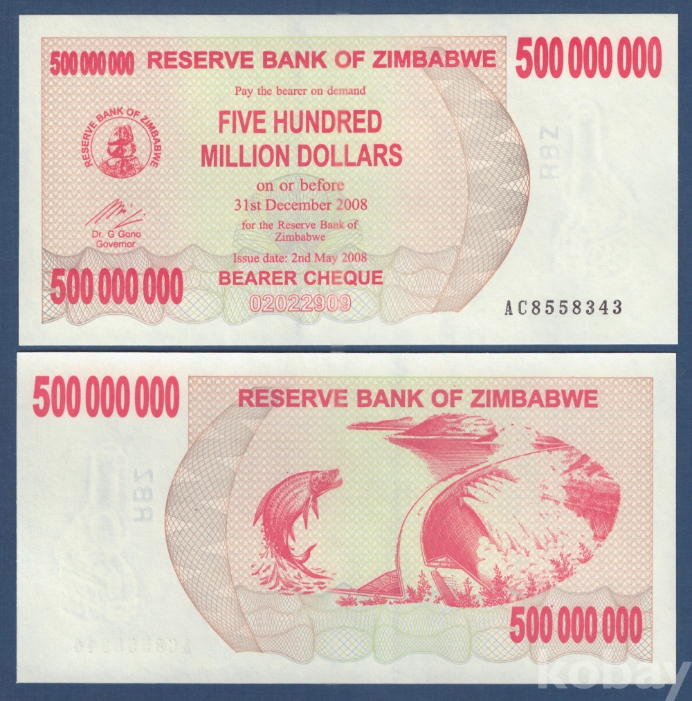 나라 : 짐바브웨 액면 : 500,000,000 달러