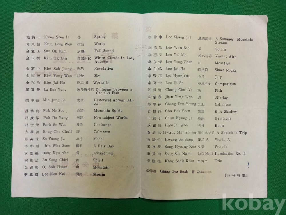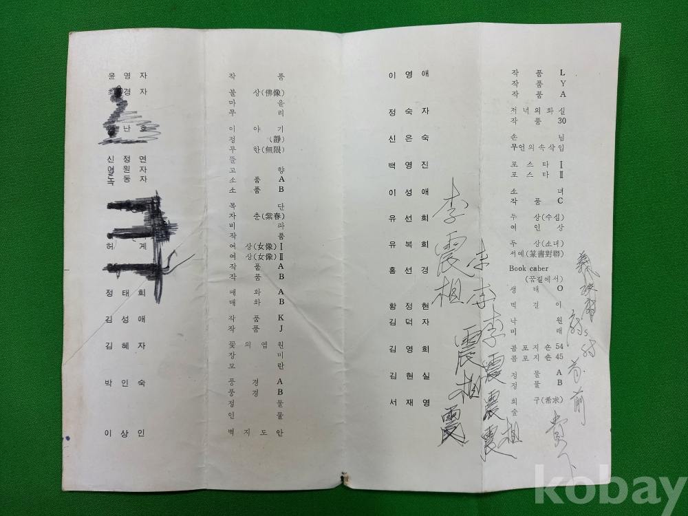 동미회작품전 팜플렛은 접혀진 부분 있으며 볼펜 글씨 많이 있습니다