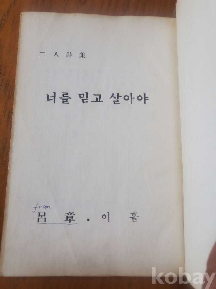 1. 너를 믿고 살아야, 2인 시집, 1964년(?), 저자 서명본, 사진 참조