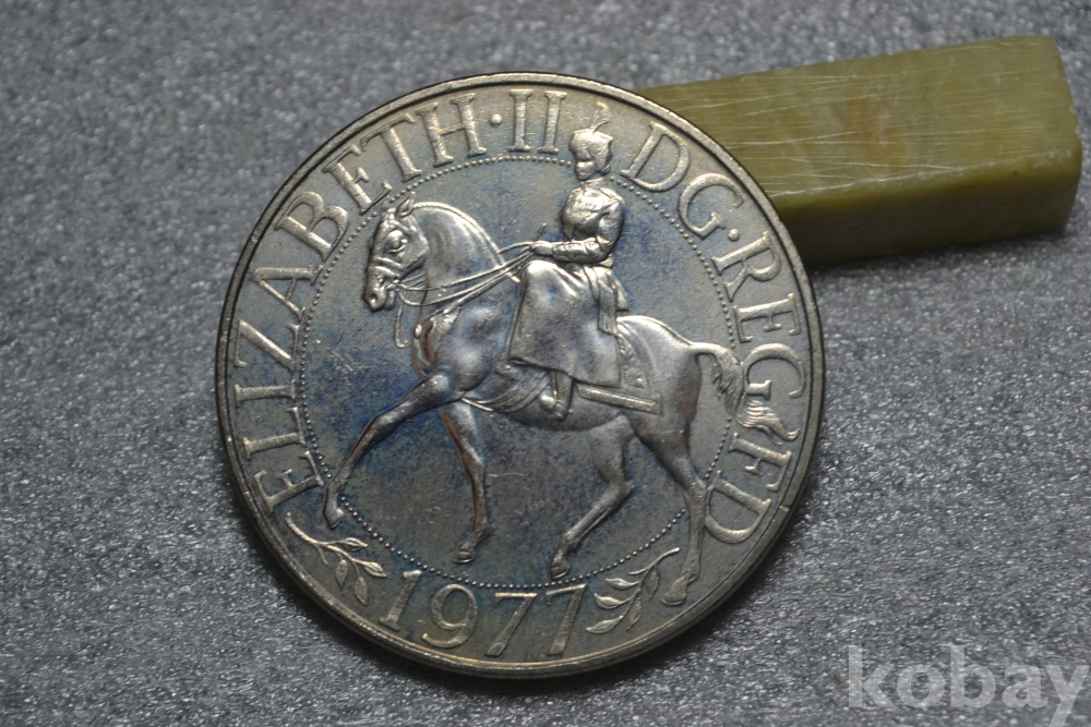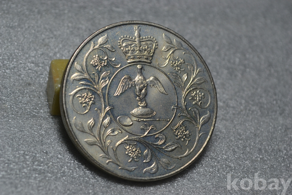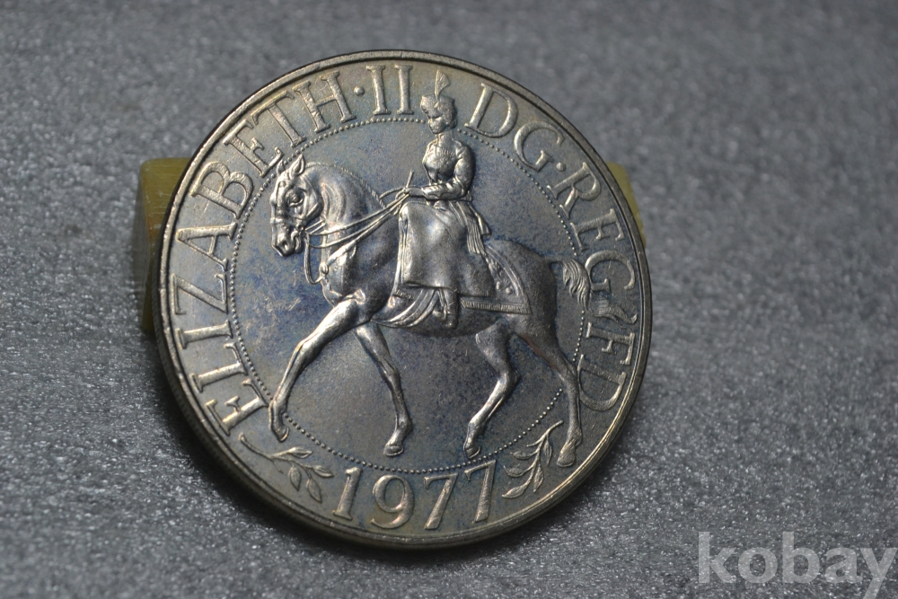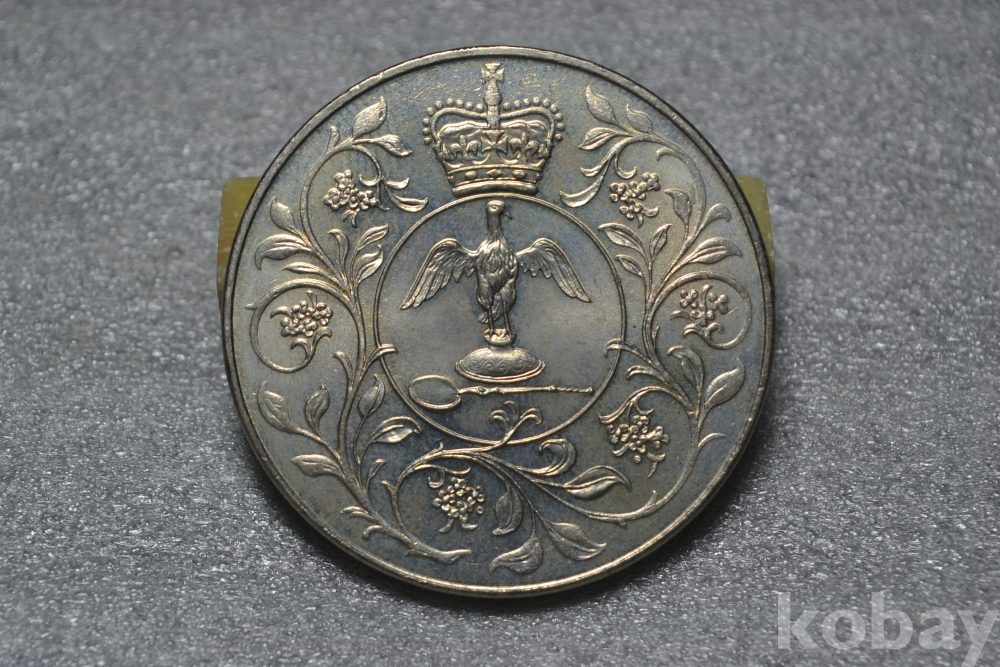 " 귀한종류 (38.5 mm 대형 크라운 사이즈) " ~ 영국 엘리자베스 2세 즉위 25주년 기념주화 25뉴펜스 / 1977년도 제작발행주화" 영국 엘리자베스2세 즉위25주년 기념주화 / 대형 크라운 주화 "