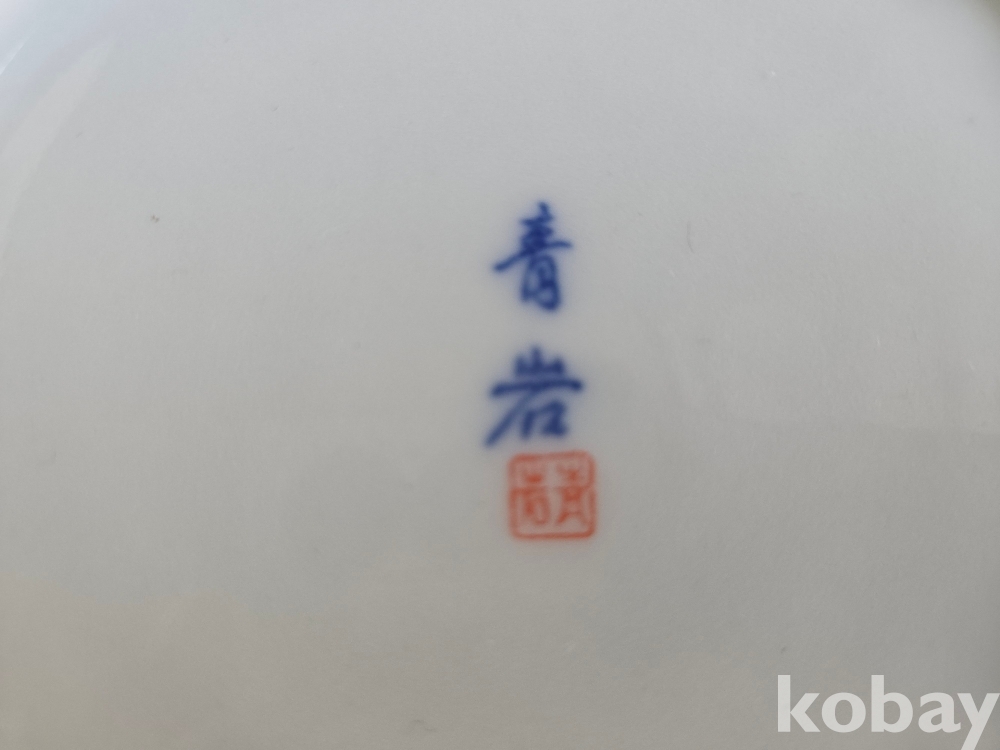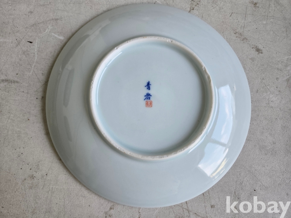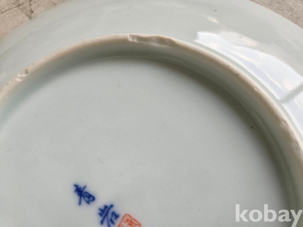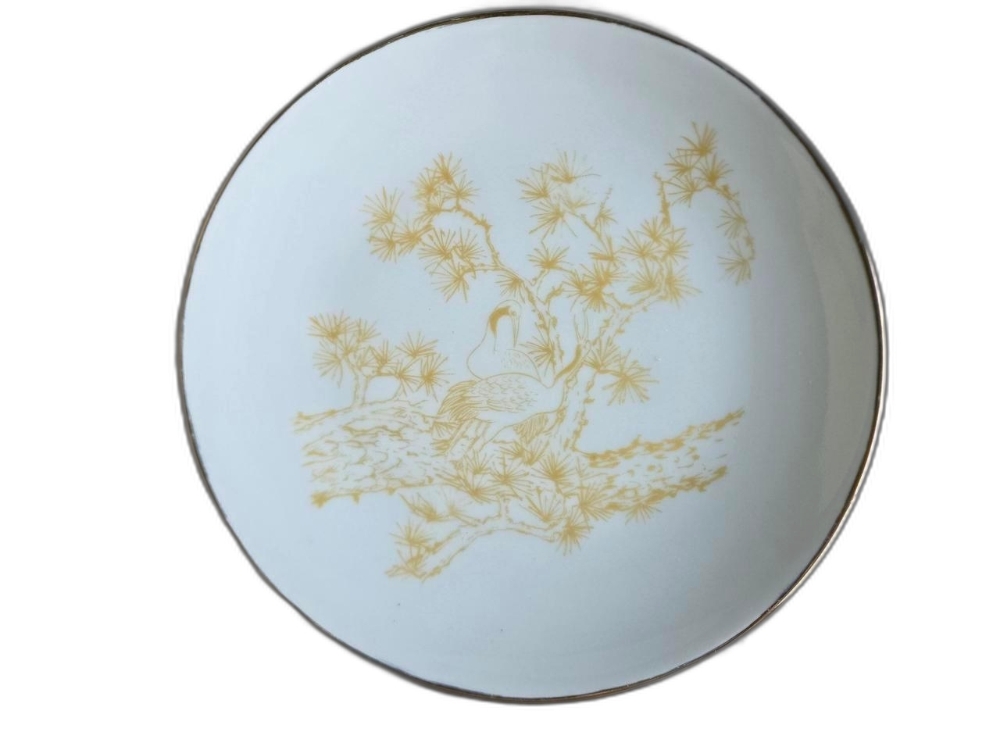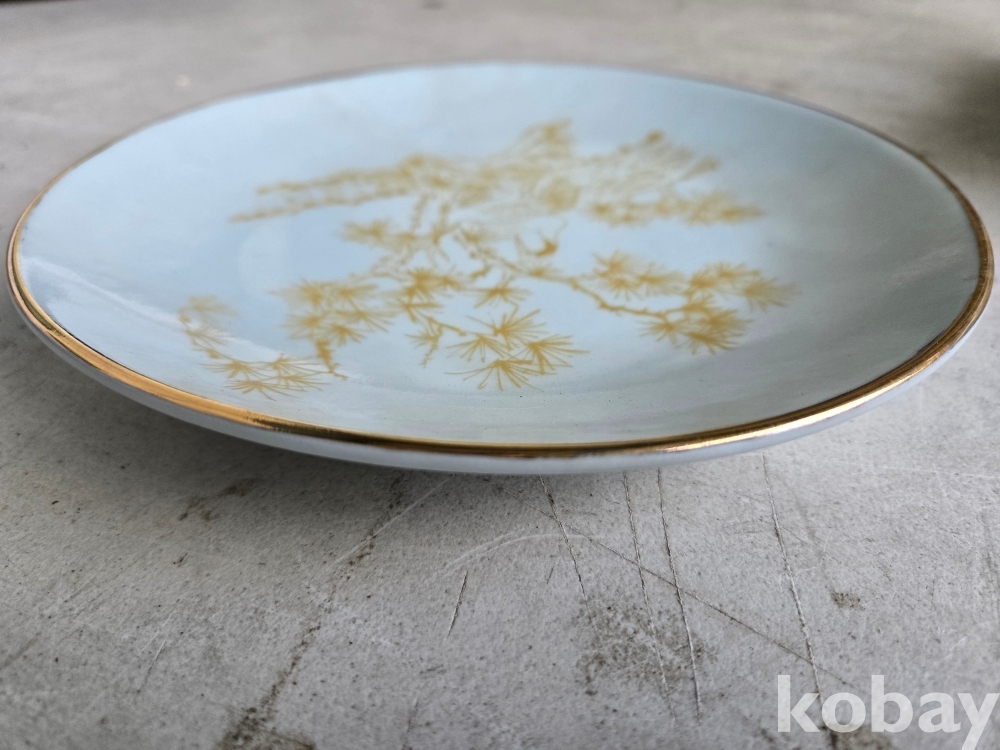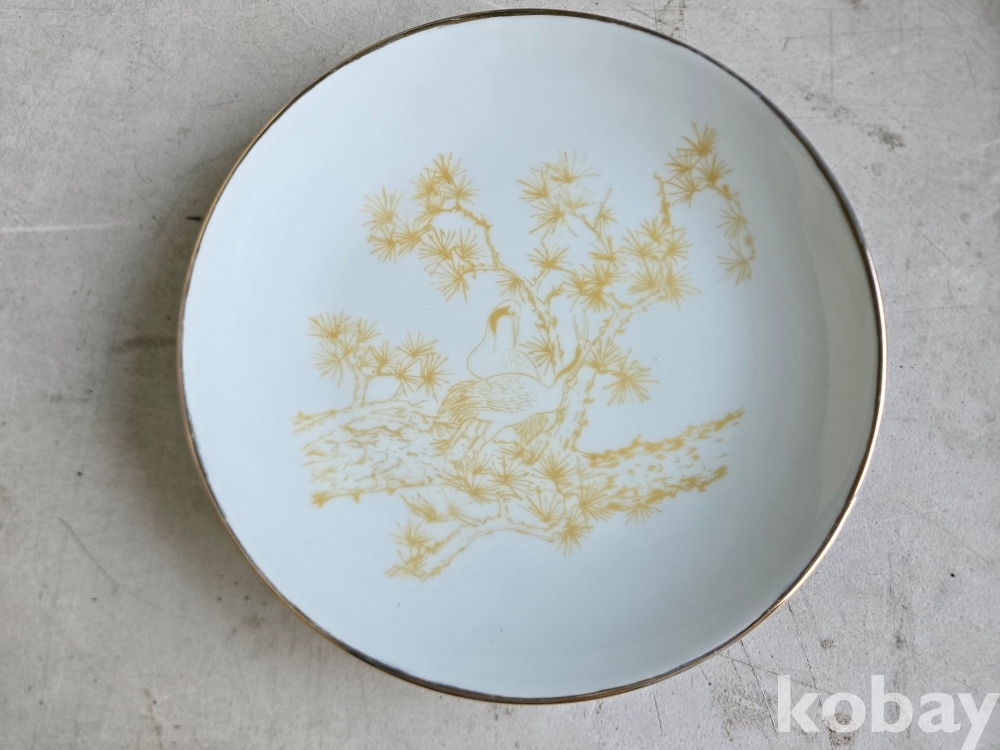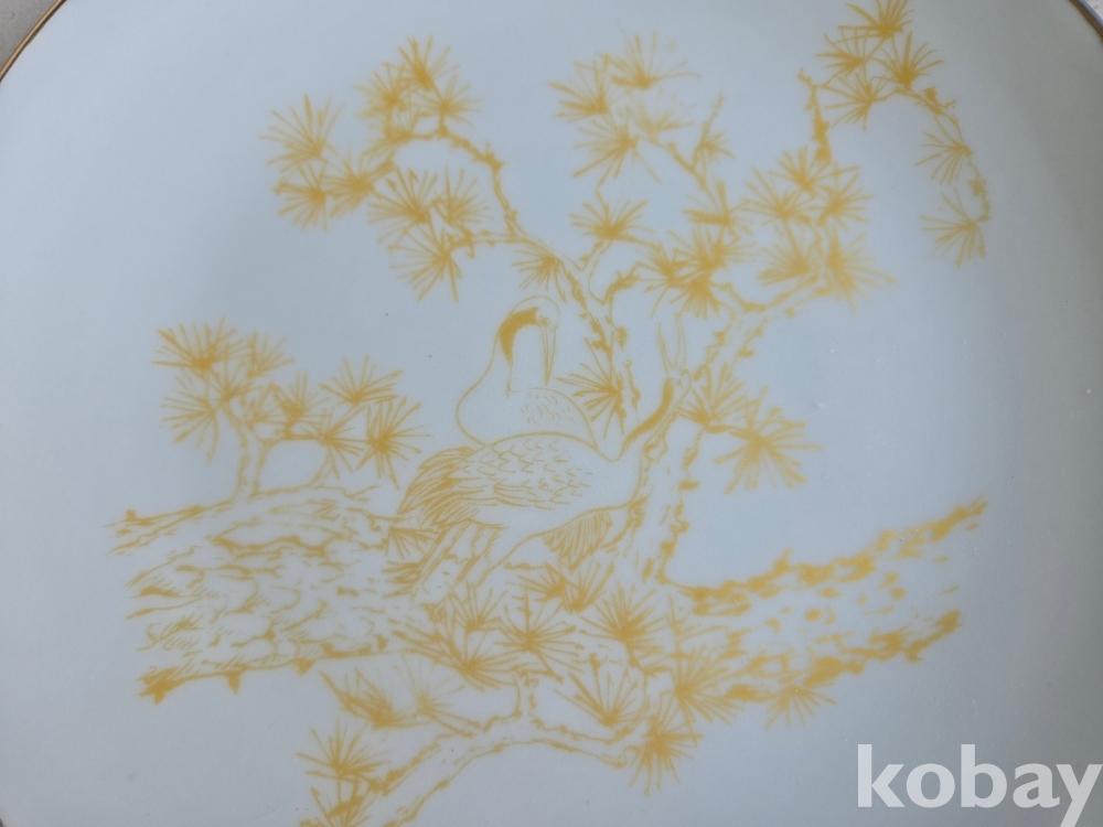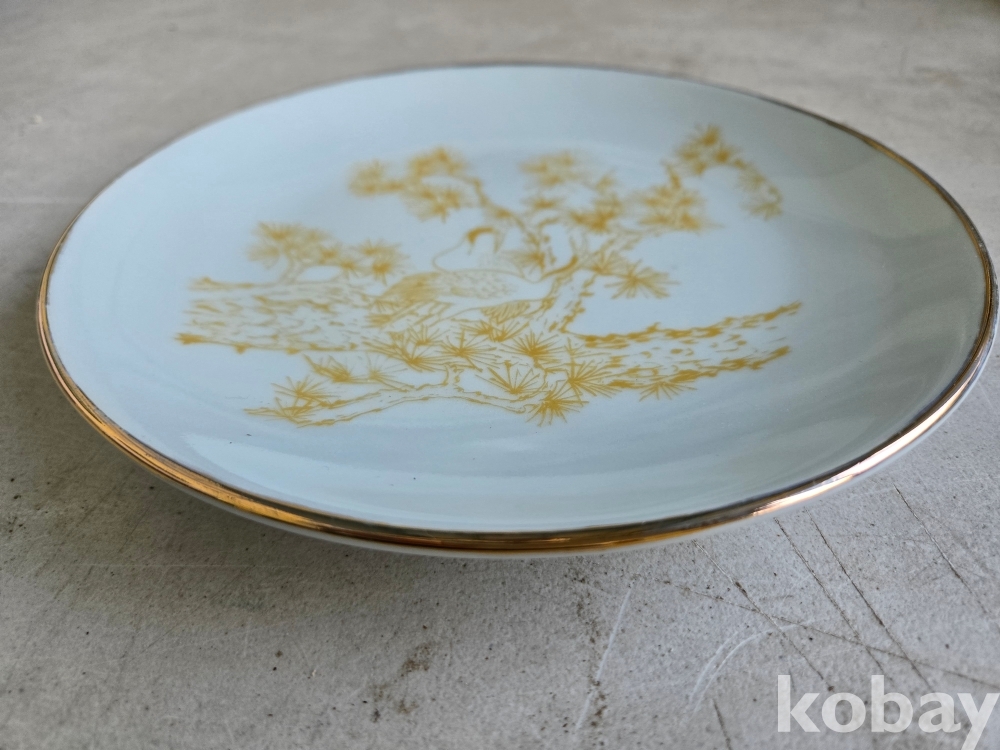 석암 도예가의 금분으로 학과 소나무 표현 접시 도자기 입니다.