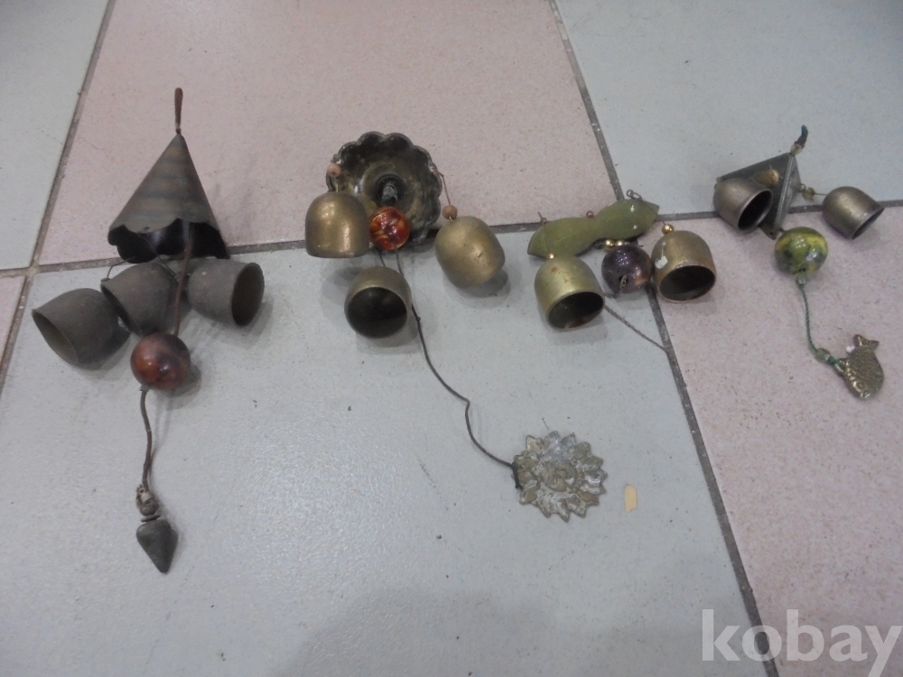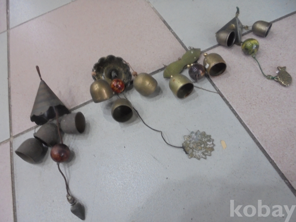 작은종소리지만 터가센곳 미물접근방지 잡귀퇴치등효력있는 전부매다는 삼각형고기달린 종3점과 덮개에 종3점과 햇님끈 나무끈아래작은종등3점