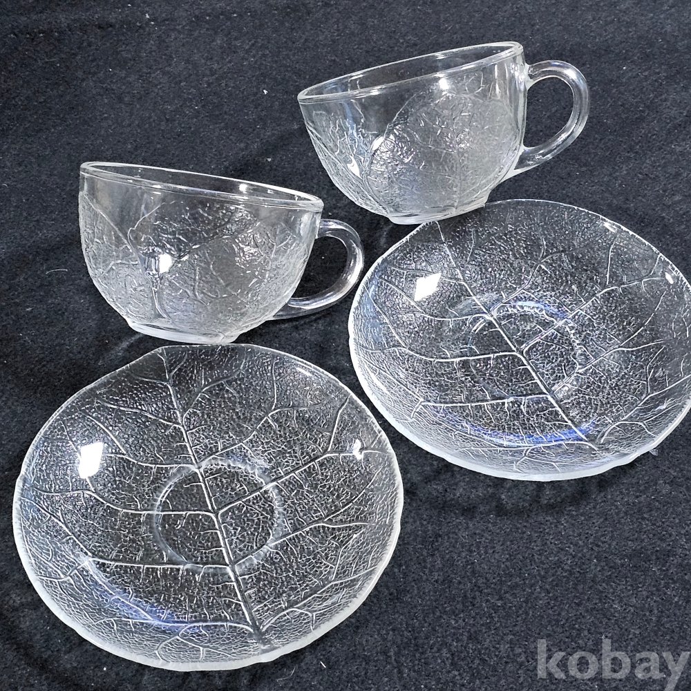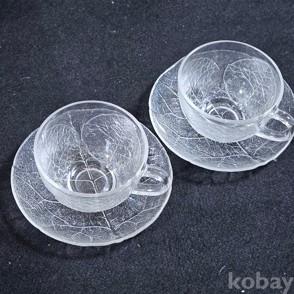 (((커피잔))) 오래전 프랑스에서만든 나뭇잎문양 빈티지 arcoroc 커플커피잔/잔받침