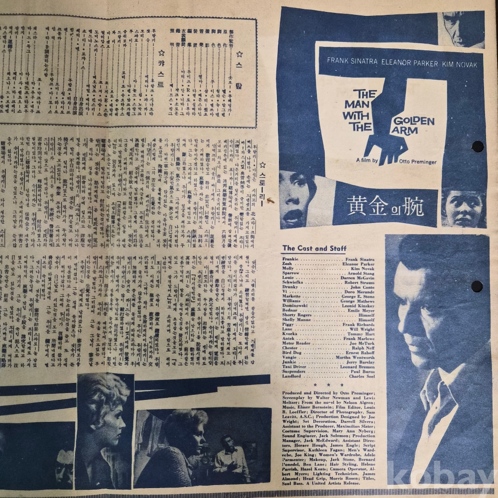 [희귀 근대사 자료] / (영화포스터/영화카드/리플렛/광고카드 등) 1955년 ‘황금팔을 가진 사나이’ / 황금의 완(프랭크 시나트라 킴 노박)