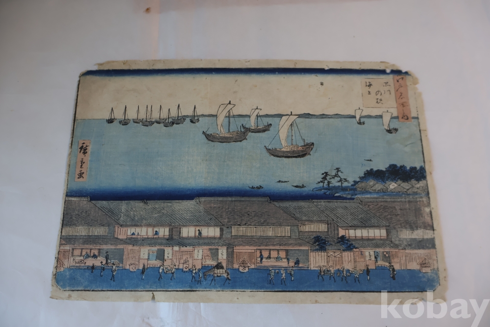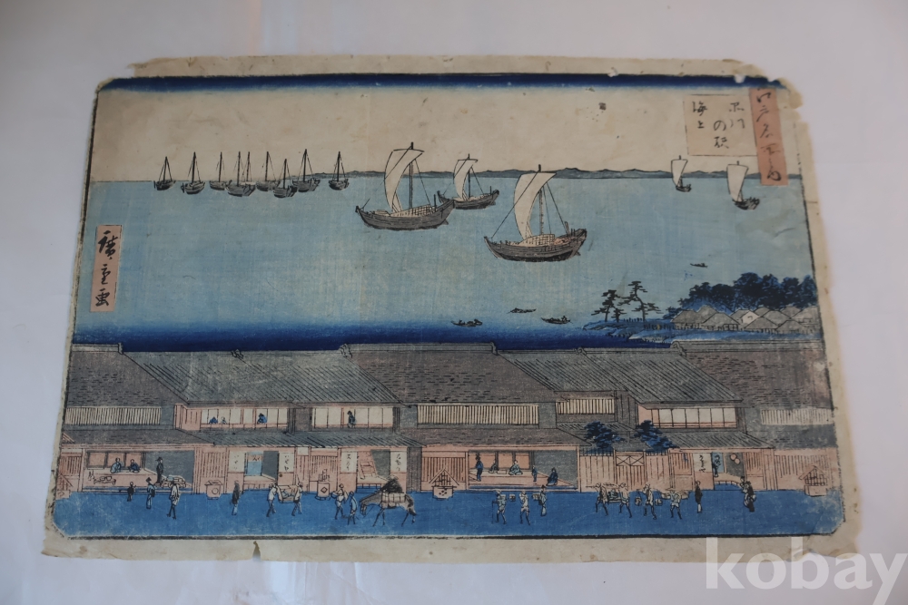 일본 우키오에 목판화의 대가 안도 히로시게의 명화 임니다 1830년대의 명화 이며 고태미를 가진 명화 이며 세월의 흔적을 가진 귀한 목판화 임니다 사진 참조 하세요 Hiroshige Ando (1797-1858) 풍경화의 대가 히로시게의 원본 목판화 임니다 아름답고 멋진 고미술 임니다 히로시게의 대표작 중에 하나임니다 사진 참조 하세요