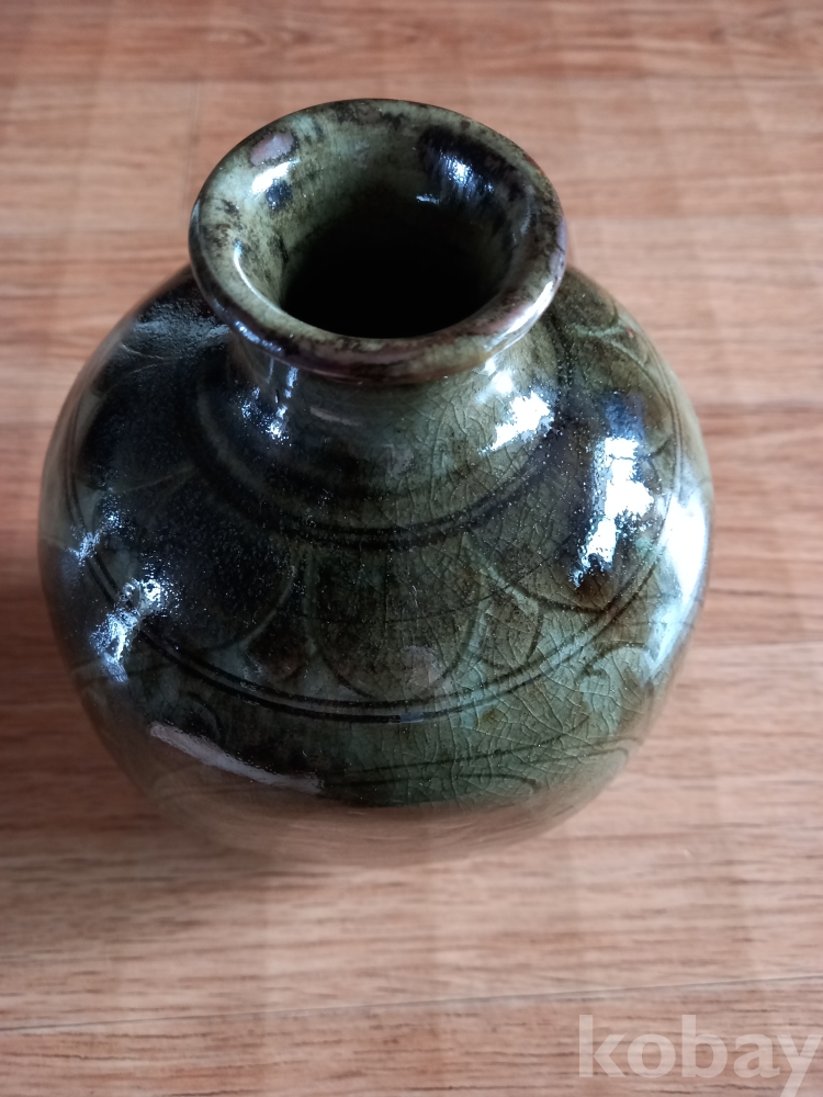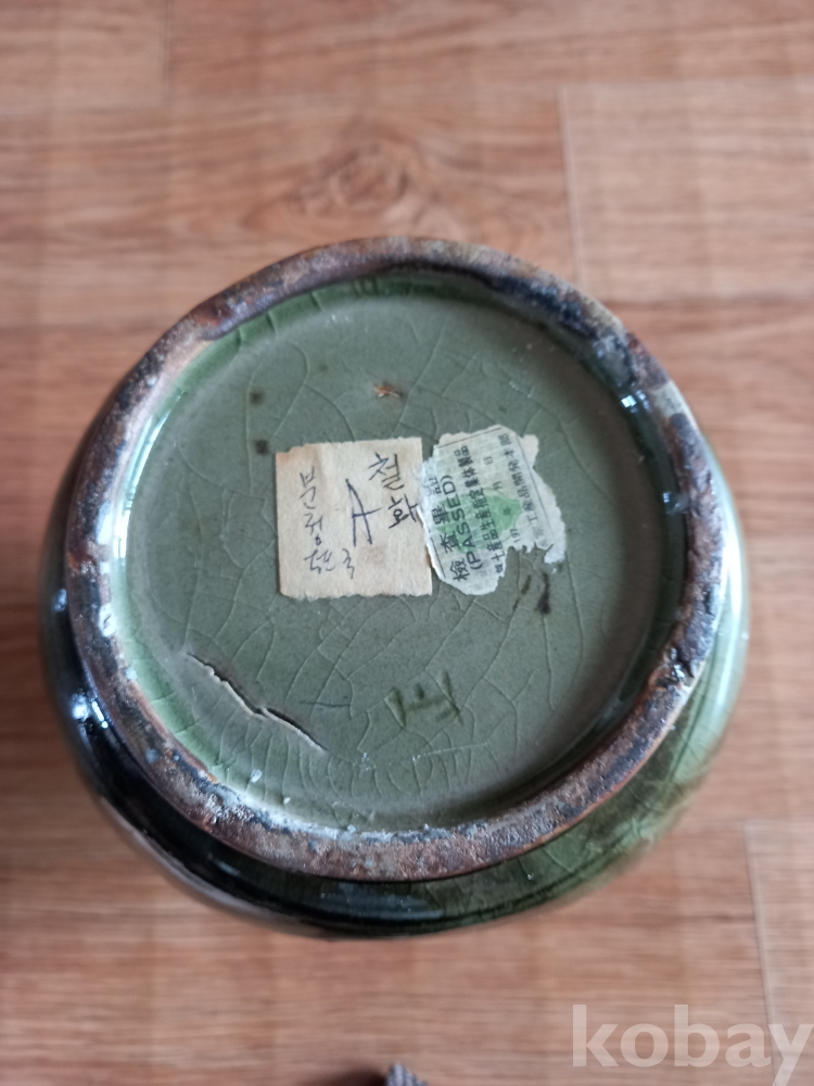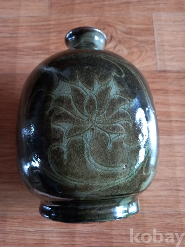 신정희 작품 도자기 편병 철화 모란문 음각 1점 입니다
