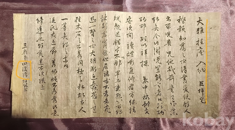◈ 3월 5일에 아우 전복순(田復淳)이 거평(巨坪)댁에 보낸 간찰.