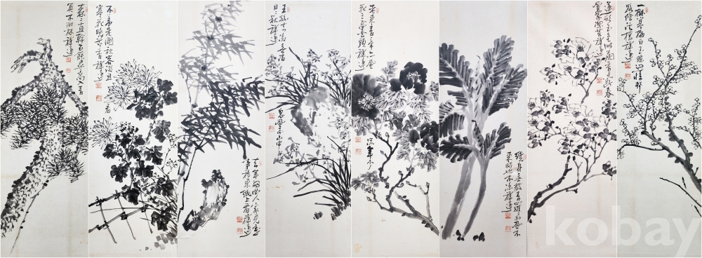 작품 사이즈 : 125 x 32.5 사군자[四君子] 8曲 병풍 作品