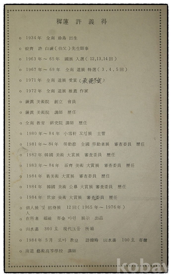 < 의재 허백련 毅齋 許百鍊, 1891-1977) 사사 > 치련[穉蓮] 허의득[許義得]