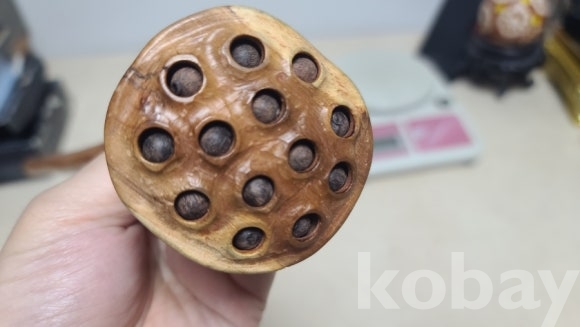 나무로 깎아만든 연봉형 여의 조각입니다. 알알이 연꽃씨가 움직입니다