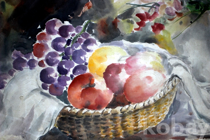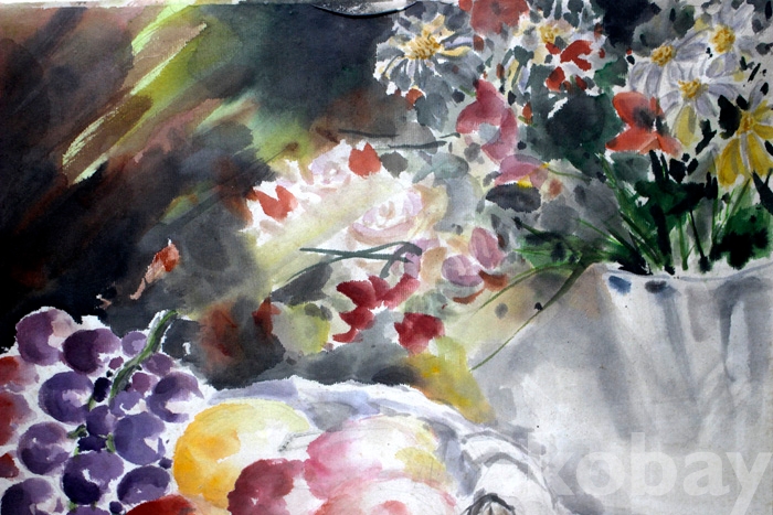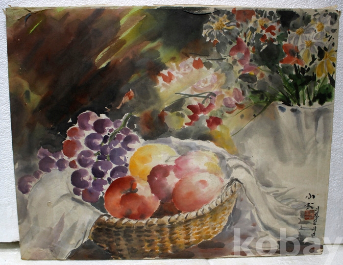 (한국화) 여류 원로작가인 小玄(소현) 김기미자의 작품 - 바구니속의 과일과 화병속의 꽃