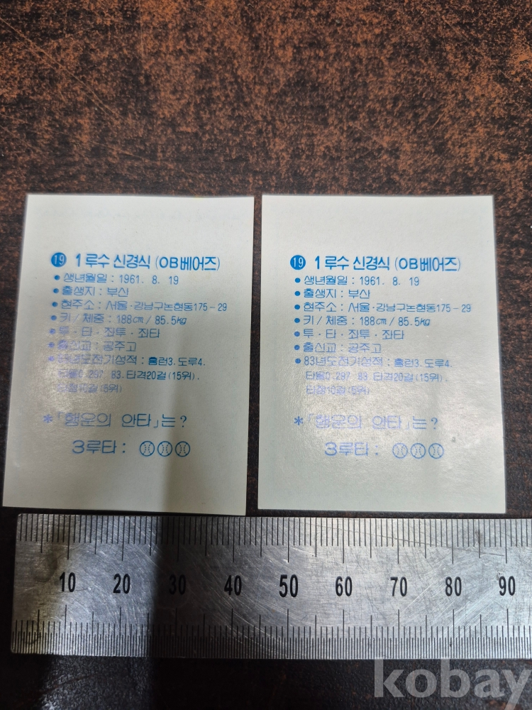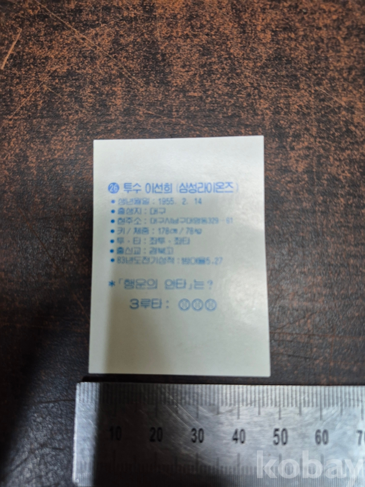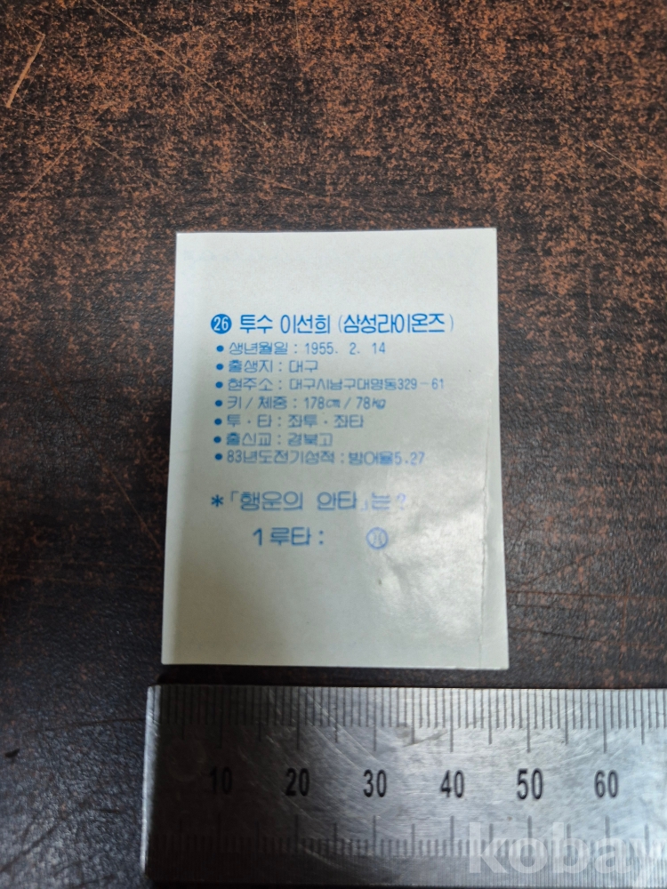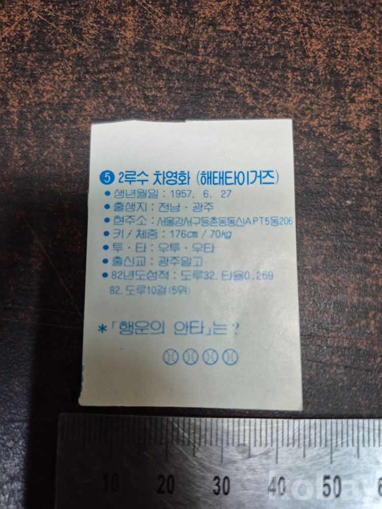 1982년 야구딱지 5점 일괄 OB베어스 신경식 2점 삼성라이온즈 이선희 2점 해태타이거즈 차영화 1점 5.5*4.5