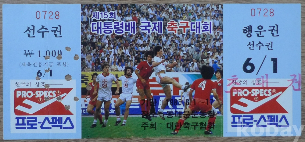 1985년 제15회 대통령배 국제 축구 대회 입장권
