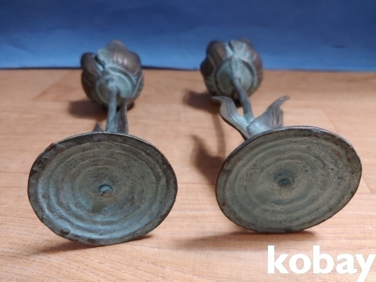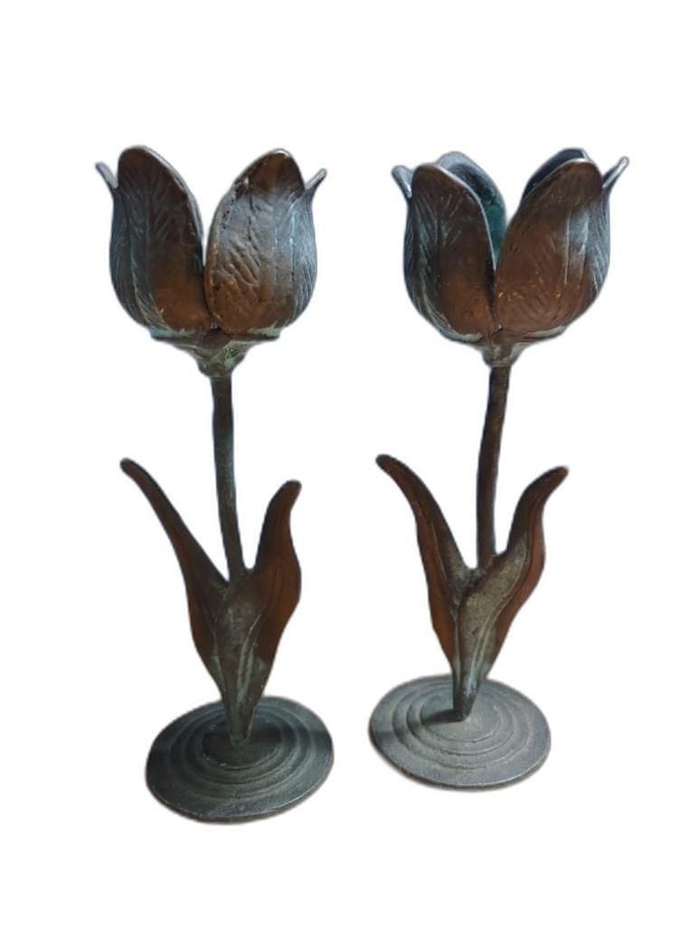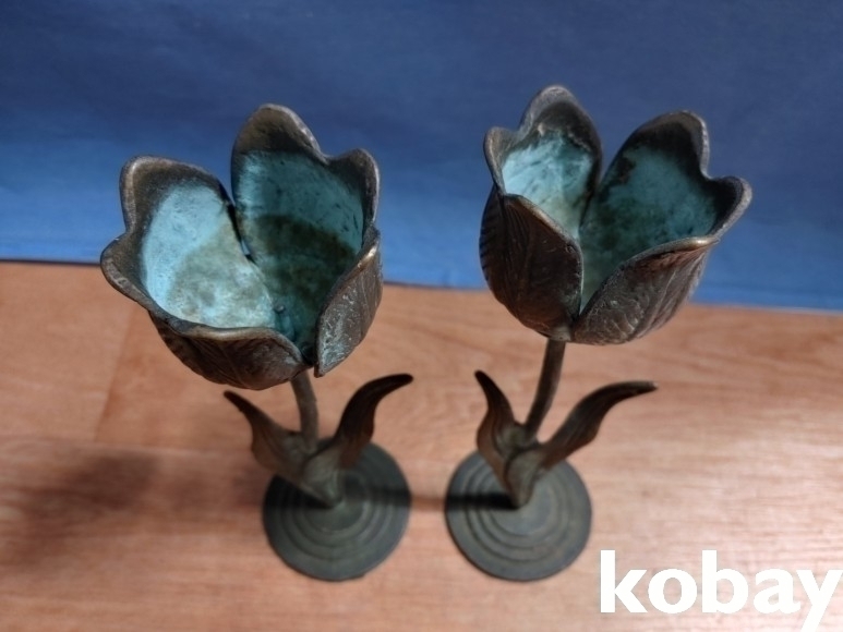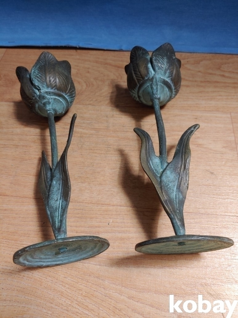 동으로 튜울립 꽃 형상 촛대 2개 입니다.