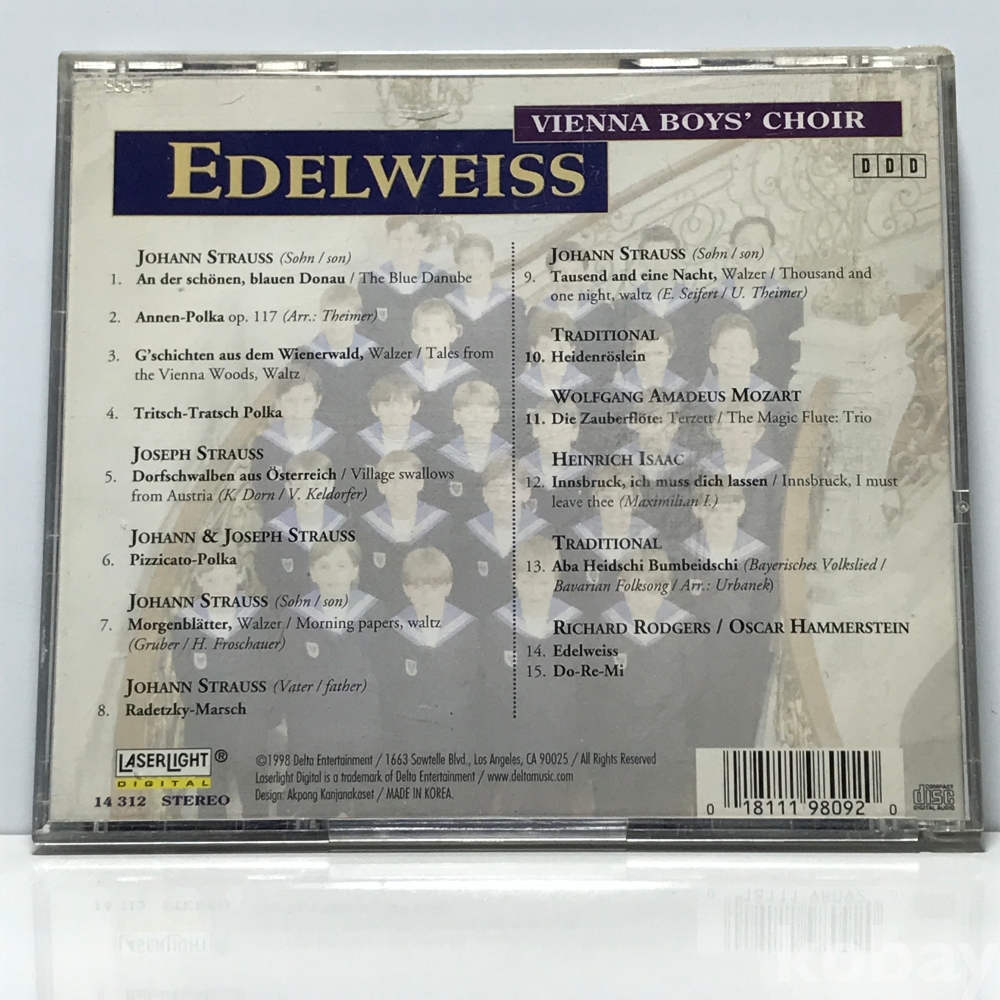 CD 6,300-94 Vienna Boys' Choir - Edelweiss 자켓 : 실사 디스크 : 사용품 깨끗 98 년 제작