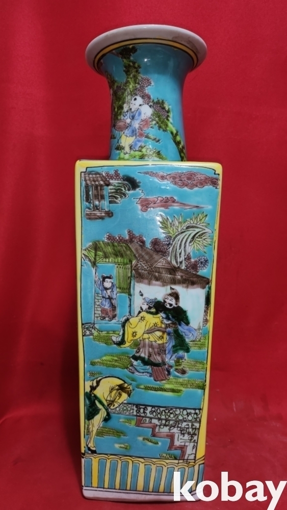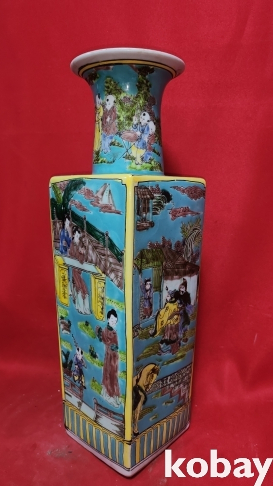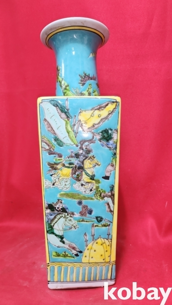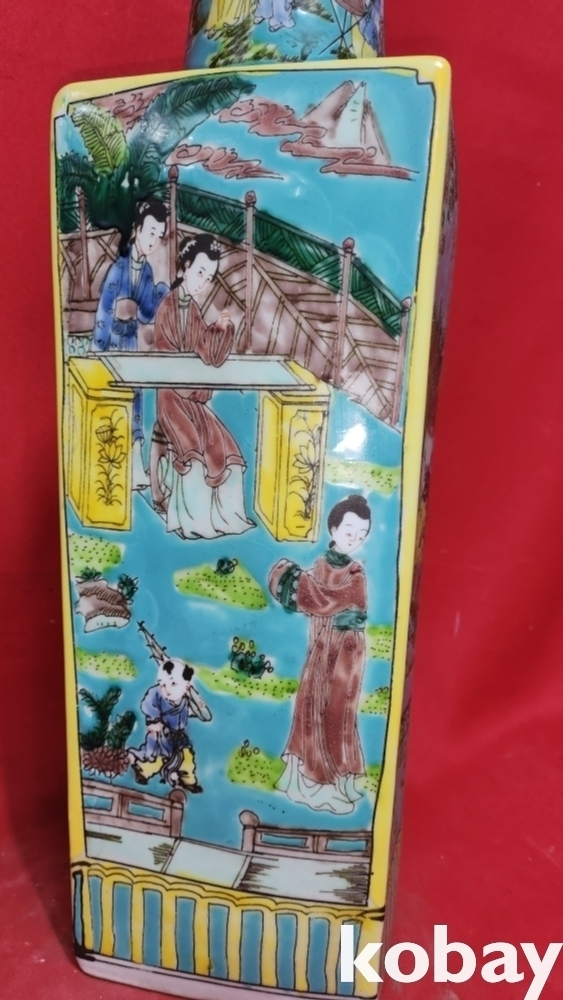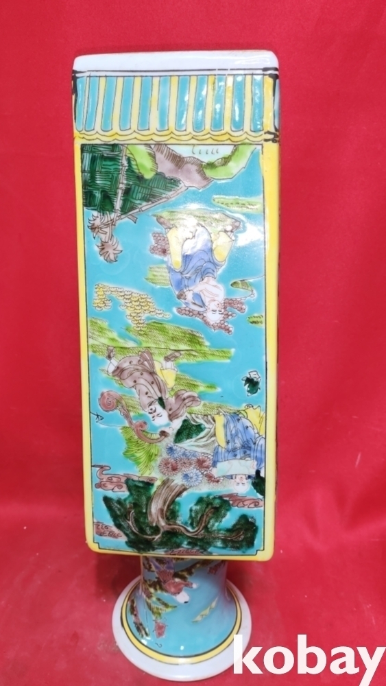 분채로 인물이 도안으로 시문된 고급형 도자기입니다,