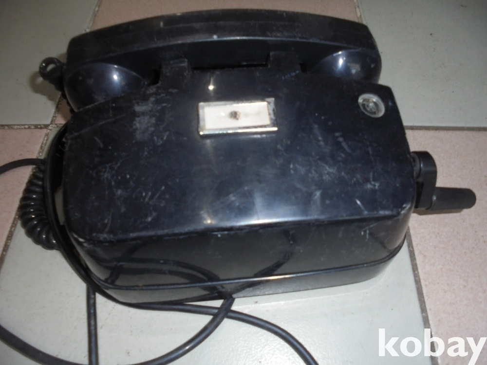 정기관물조사 딱지와 1호전화기 딱지가붙은 깨끗하고 기능좋은 오래된 돌리는 관용 1호 수동전화기