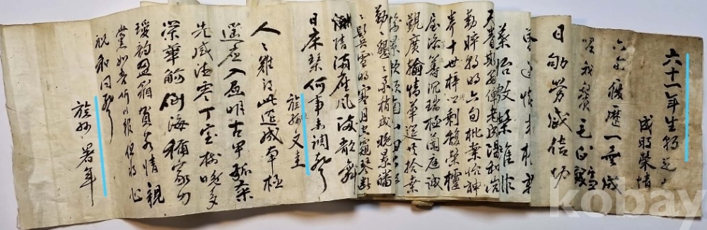 ◈ 한지를 붙여가며 쓴 긴 두루마리.