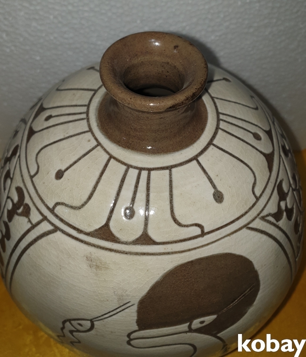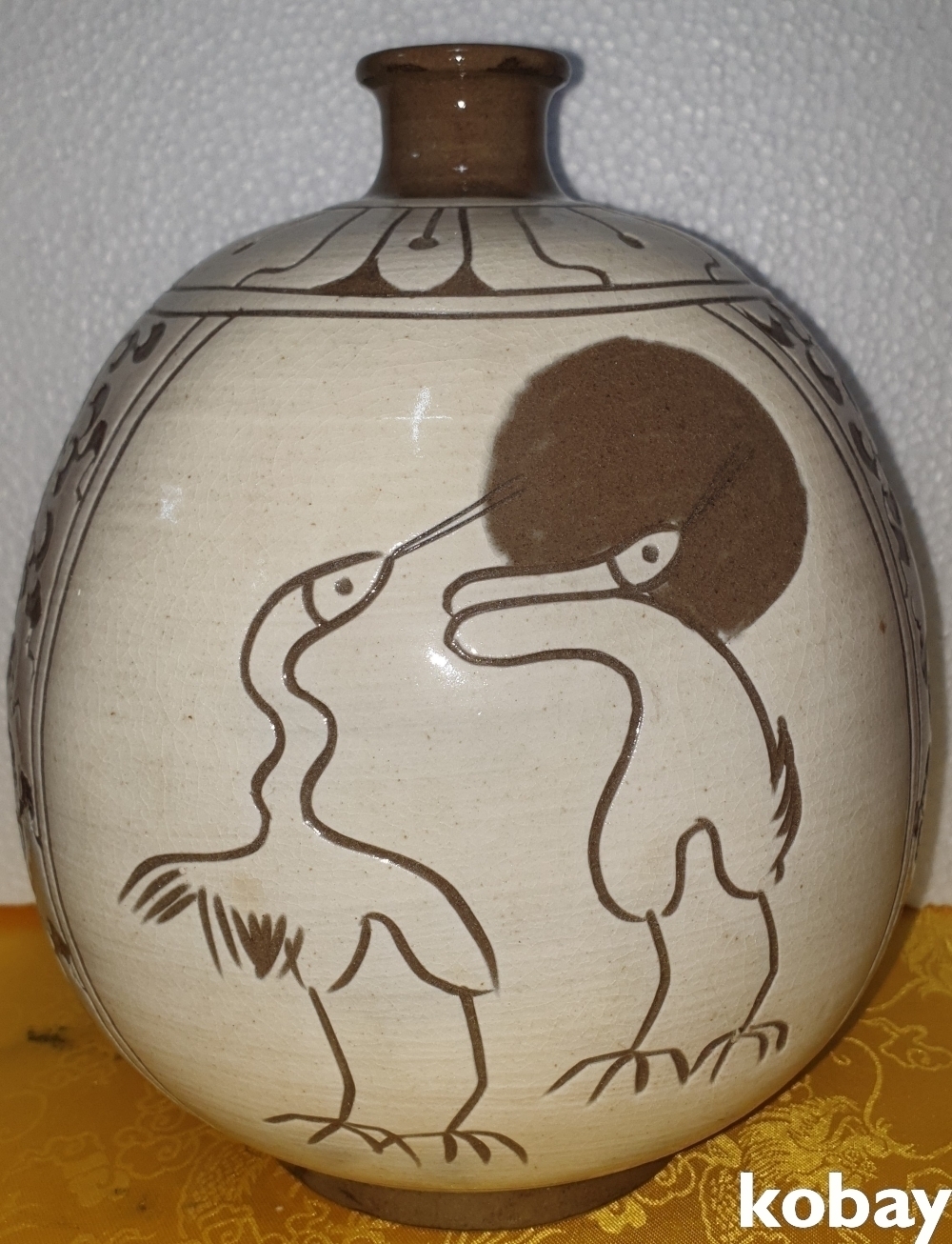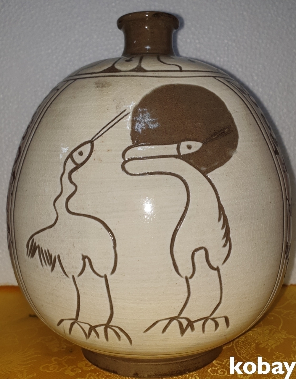 남정(南井)도예 분청 월학(月鶴)문 소구 편병입니다,