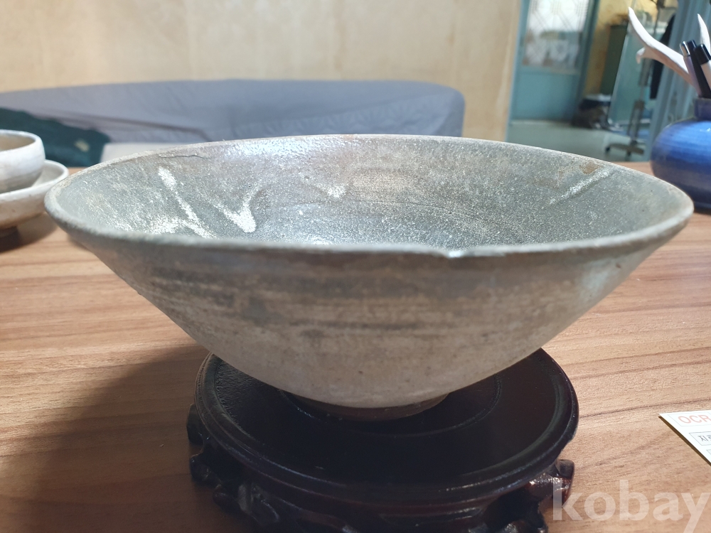완전하고 소바잔 형태의 고려청자 찻사발 입니다.