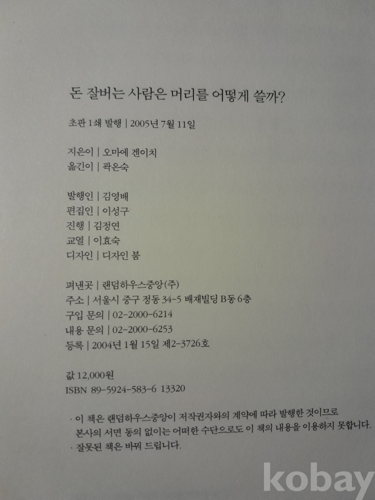 [ 돈 잘버는 사람은 머리를 어떻게 쓸까? ] 두뇌 회전법 / 오마에 겐이치