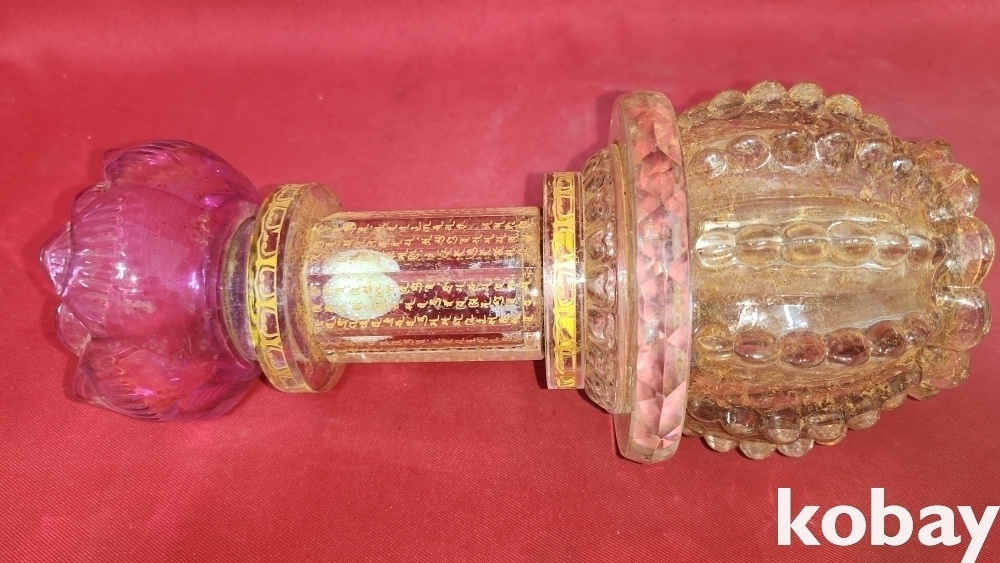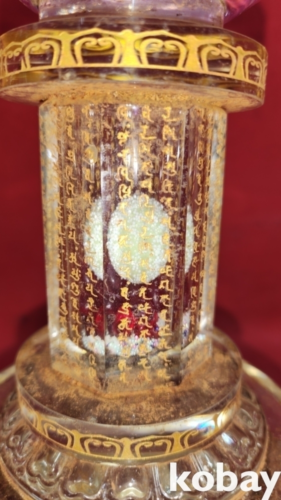 목선에 8각에는 세로로 불교용 범어(梵語)가 음각으로 새겨져 있는 공력이 많이 가미된 특별한 사리함입니다, 목선에 8각 내부에는 사리가 들어 있어서 눈에 보입니다,