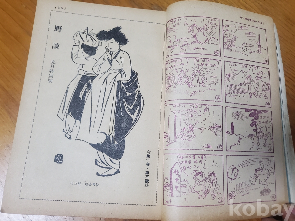 1. 야담(野談) 1권 3호, 희망사, 1955년, 274쪽, 표지 그림 박래현, 상태 상, 사진 참조