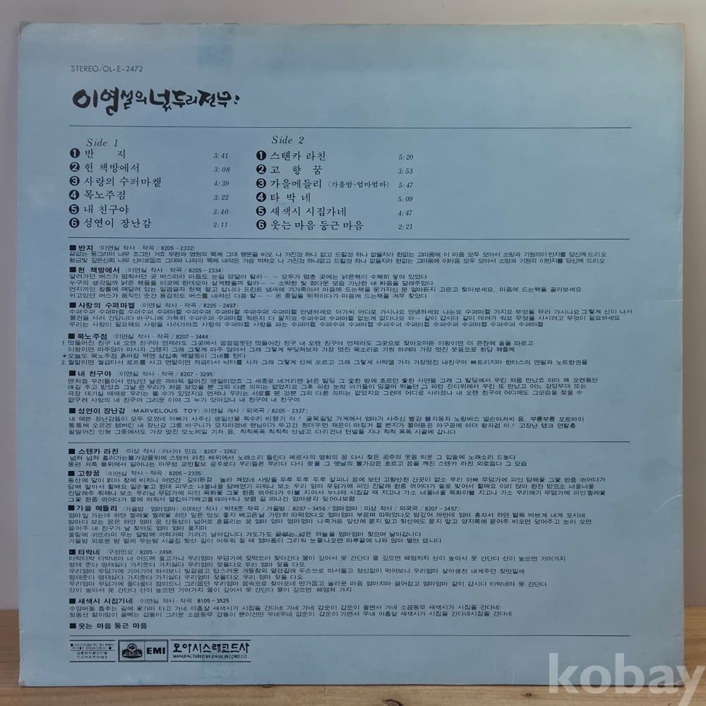 | 자켓상태 | VG : 주름, 접힘, 모서리 찢김 다수 | 음반상태 | EX : 재생에 영향 없는 가벼운 기스 존재 | 발매정보 | 초반 | 가사지여부 | 무 |