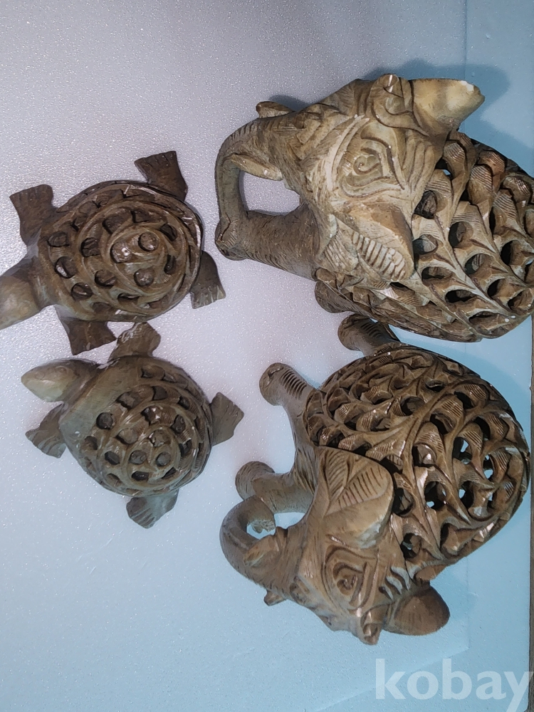 구성:코끼리 조각상 2점, 거북이 조각상 2점