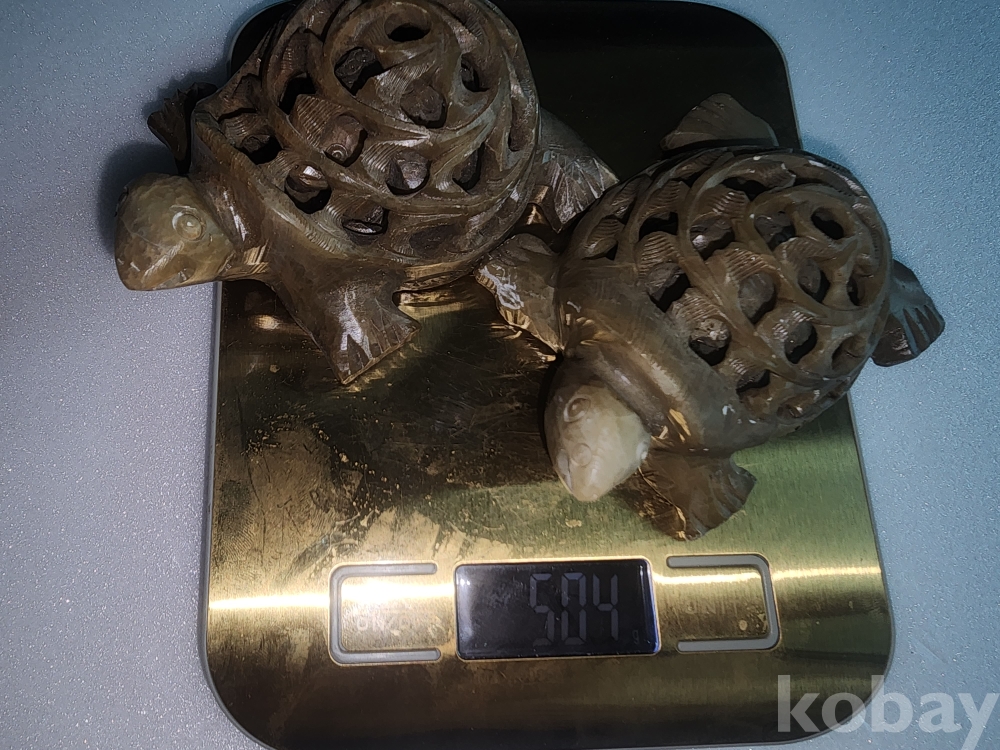 거북이: 가로 약 10cm 내외 / 2점 합계 무게5049g