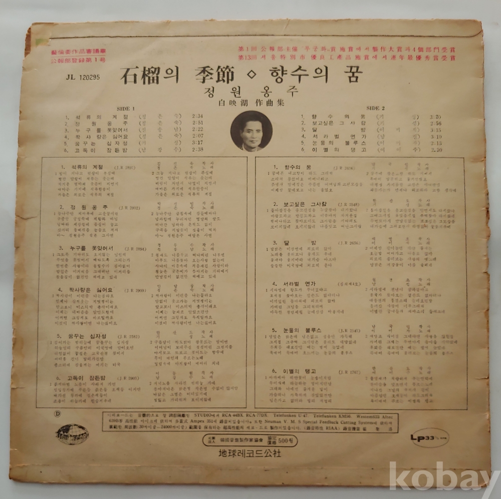 백영호작품집Lp/석류의계절,정원옹주,향수의꿈