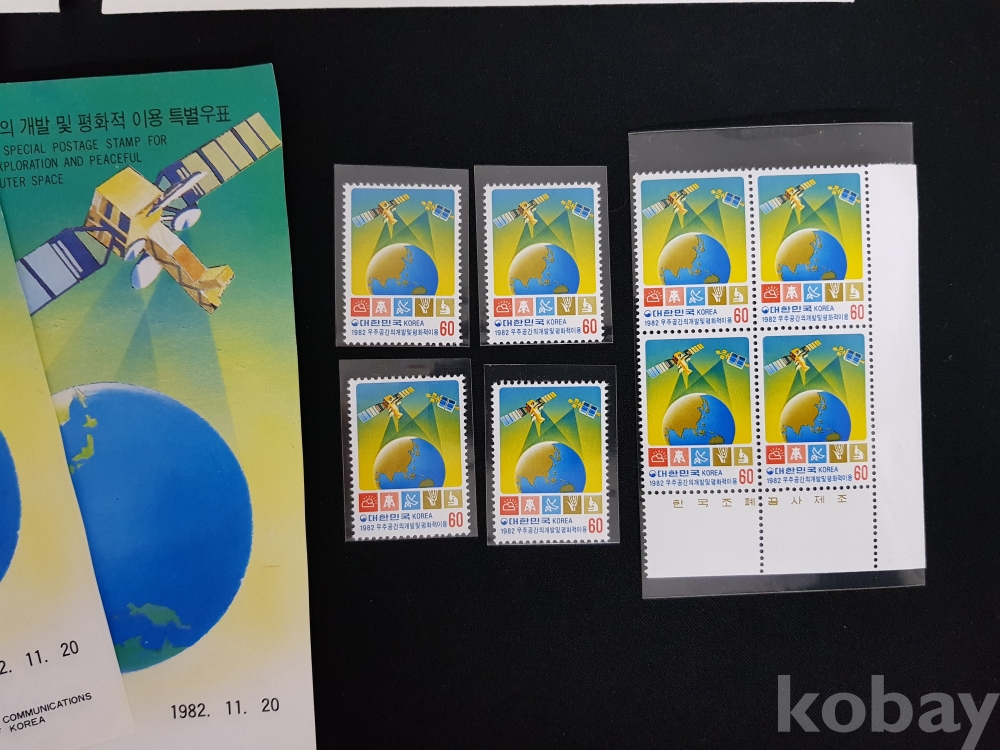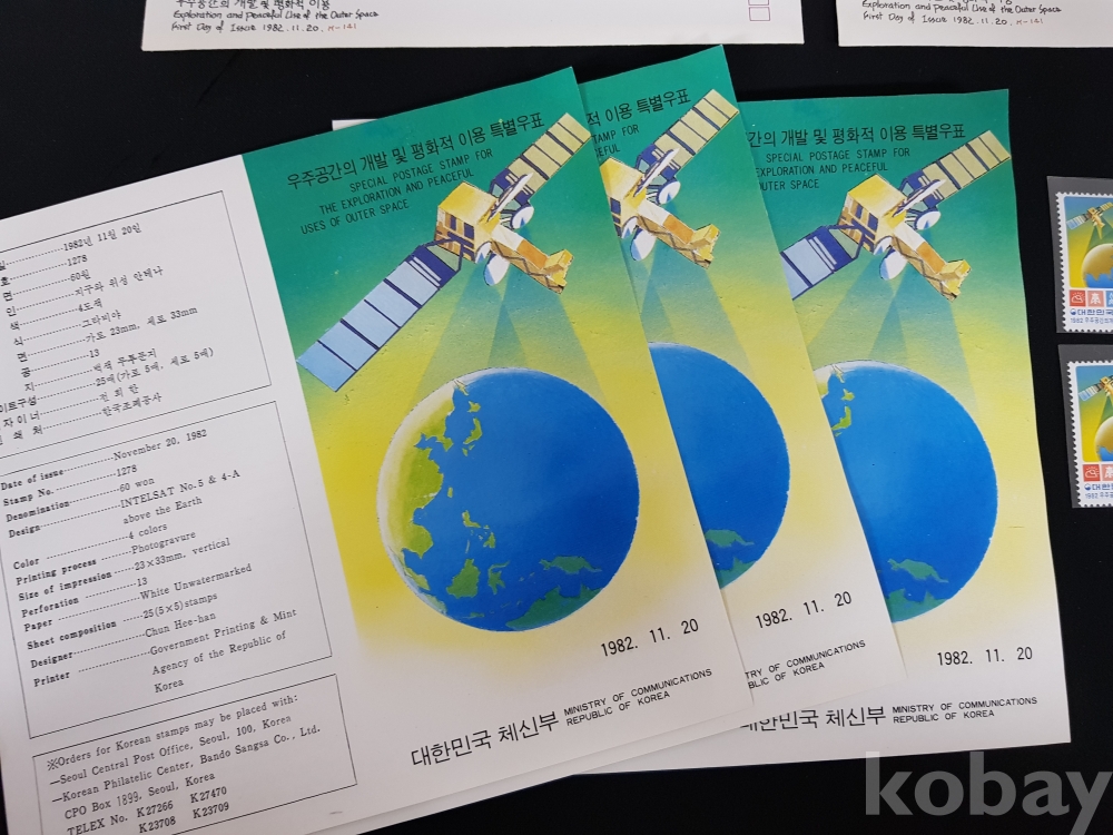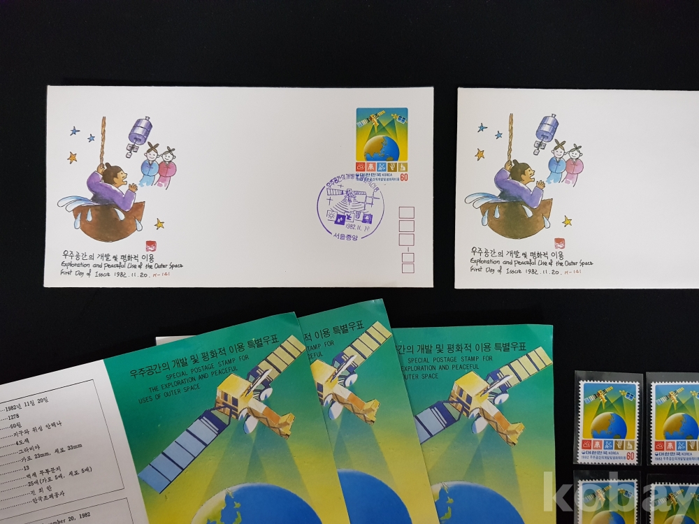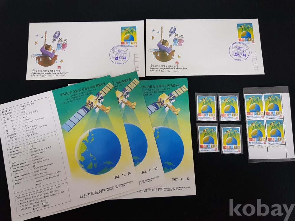 - 1982년 우주공간의 개발 및 평화적 이용 안내카드, 초일봉피, 명판 등 모음