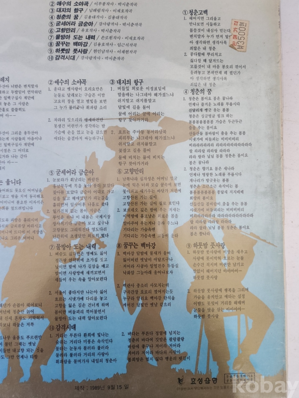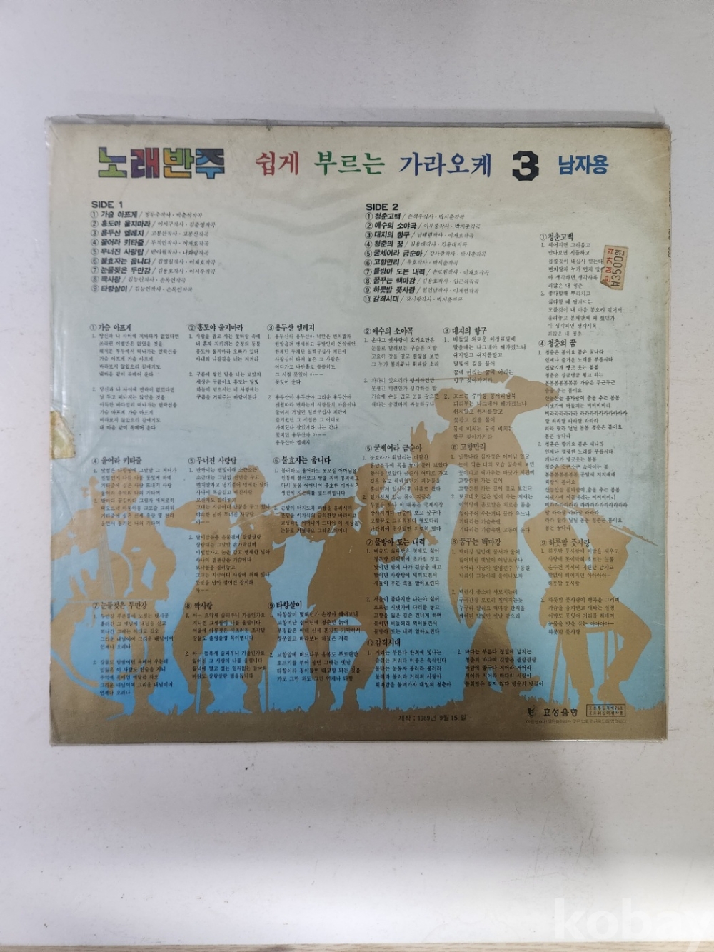 1989년에 발매된 노래 반주 3 남자용 LP판입니다.