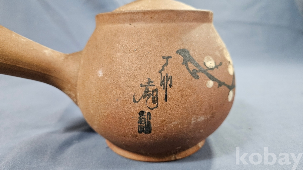 매화문양이 그려져있는 큼직한 도자기 다관입니다.