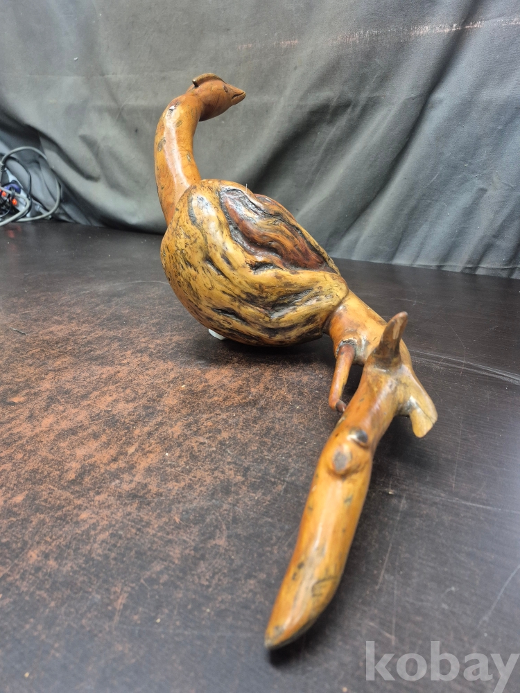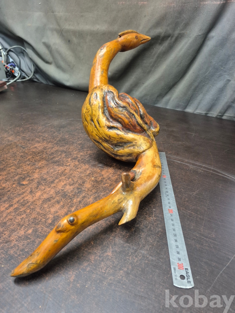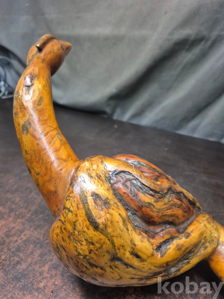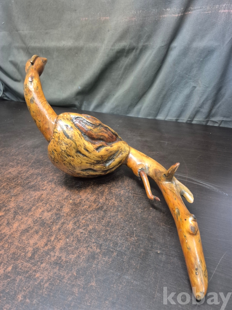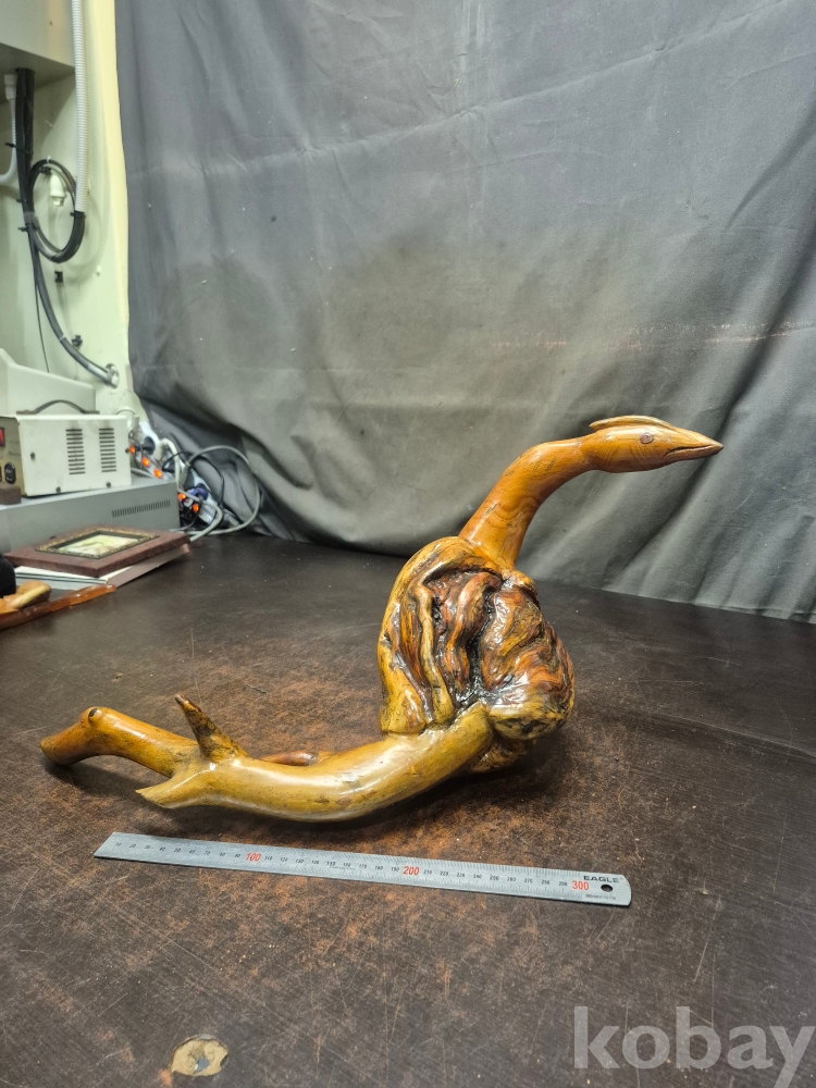 소나무 부엉이 방귀로 만든 학 모양으로 가공된 나무 조각품 에 니스칠 되어 있어요 56*20*30