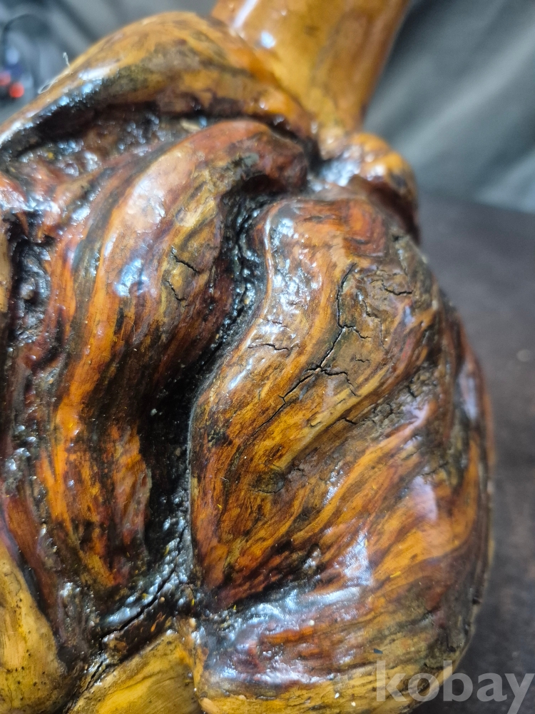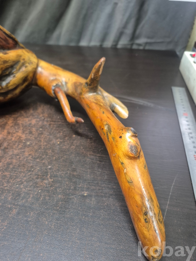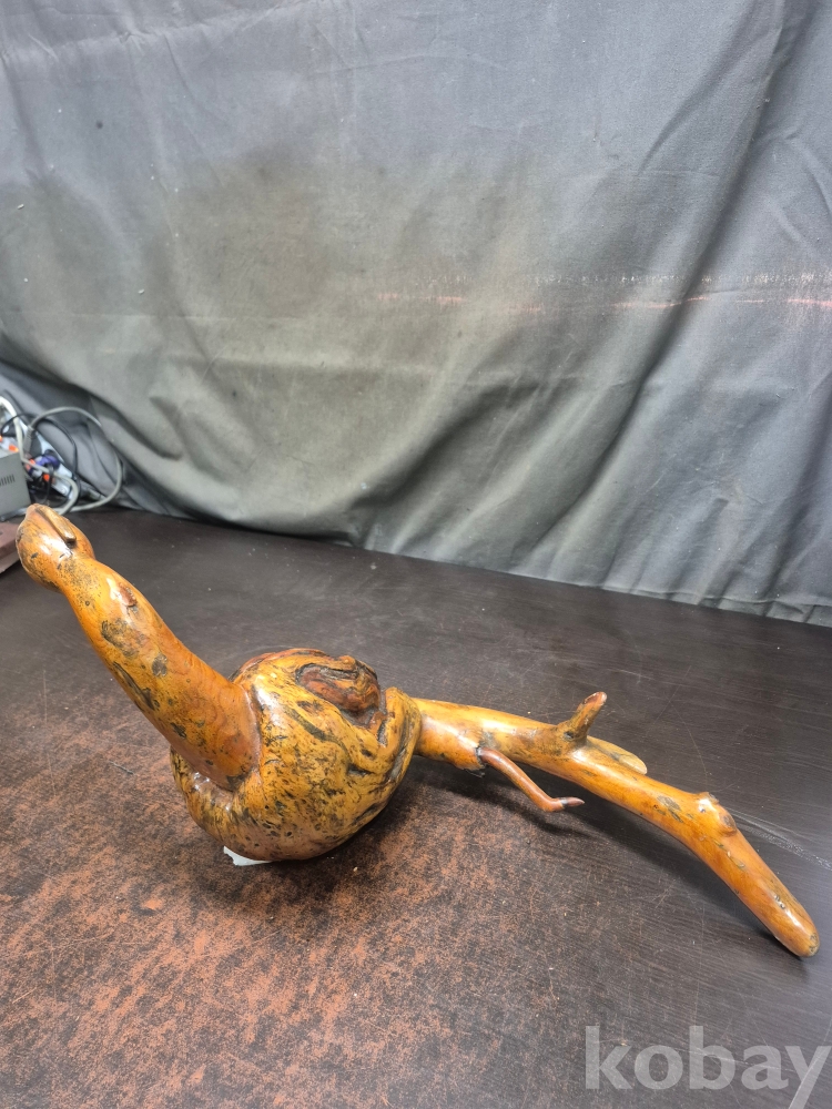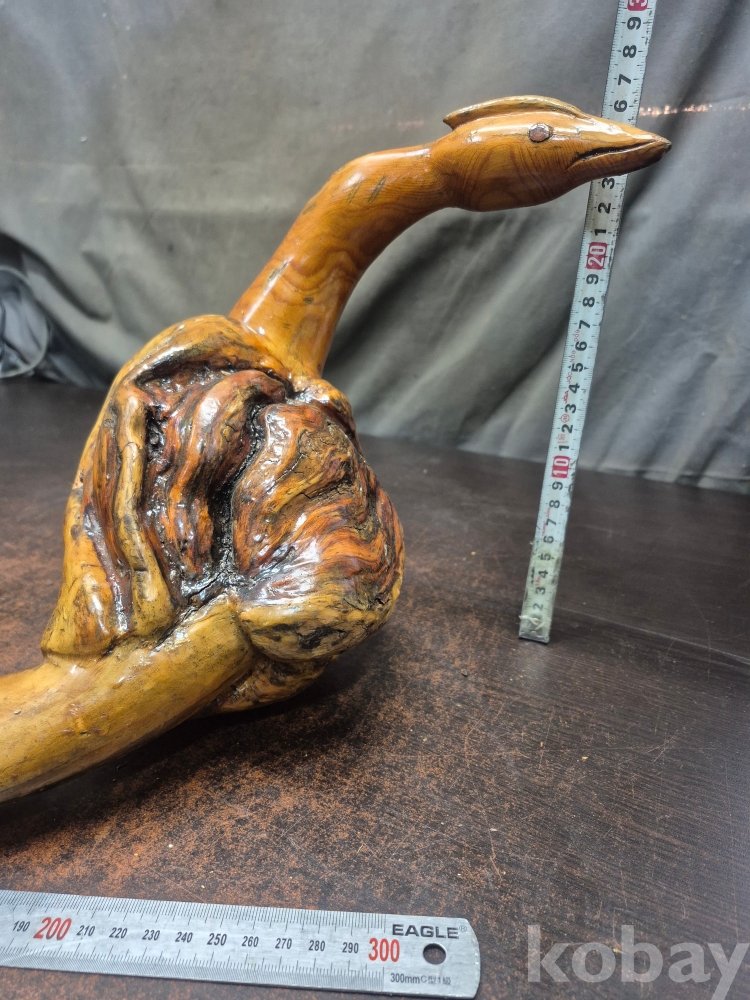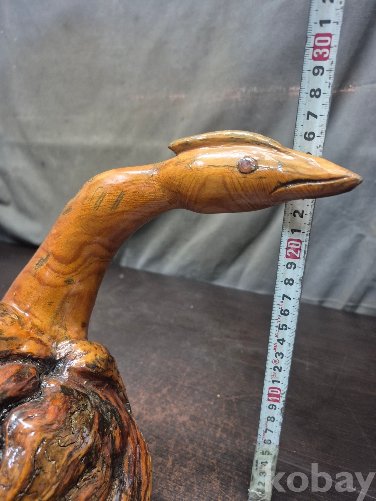 소나무 부엉이 방귀로 만든 학 모양으로 가공된 나무 조각품 에 니스칠 되어 있어요 56*20*30
