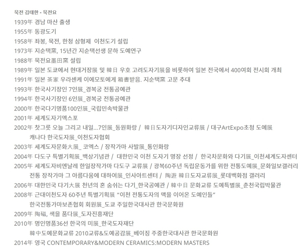 "묵전" 김태한 선생은 손꼽히는 1세대 도예가로 작품의 대부분을 일본 라이센스로 일본에 공급된 연유로