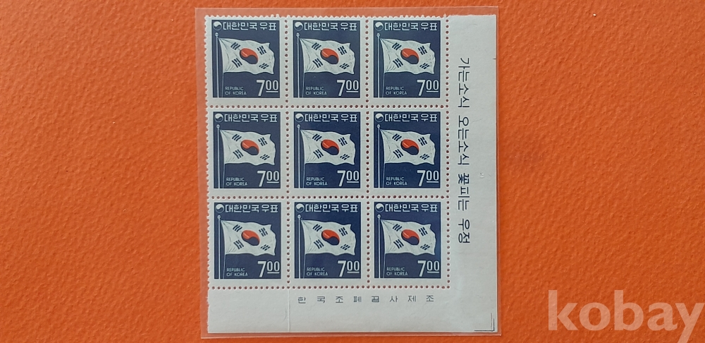 2차 국백 7원 태극기 9매 명판 입니다.