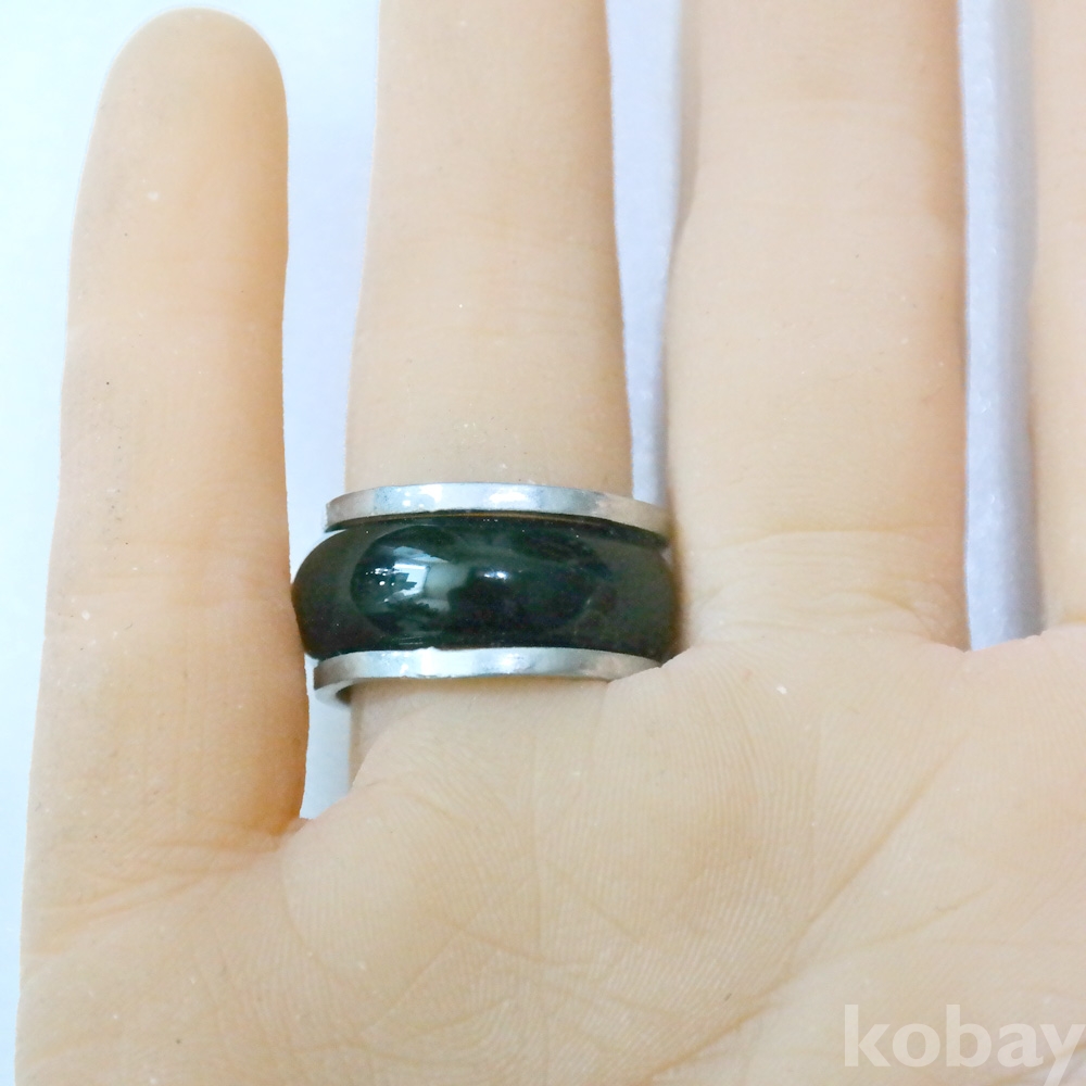 옥으로 만들어졌으며 테두리는 합금재질로 만들어진 옥반지 입니다.