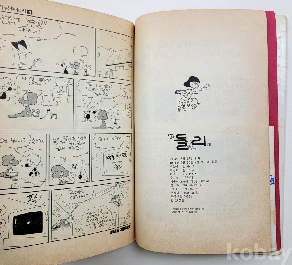물 품 명 | 김수정 / 아기공룡 둘리(4) / 코믹 X / 1994년 / 태영문화사 |